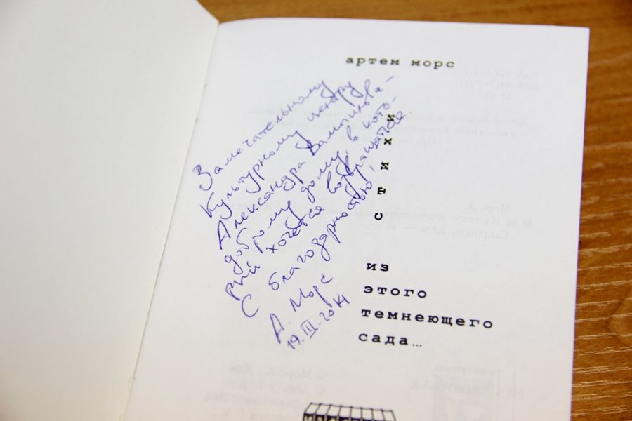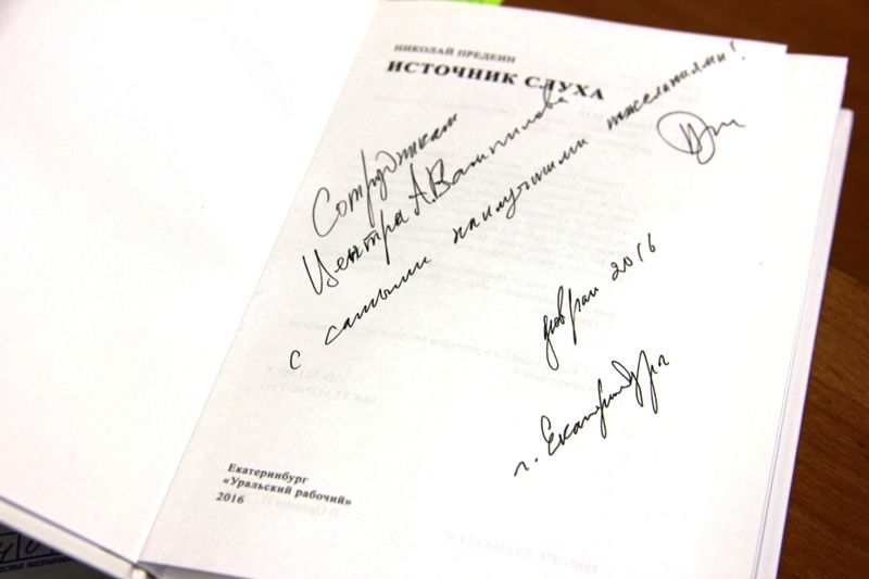 Автограф Николая Предеина на сборнике стихотворений «Источник слуха» (Екатеринбург, 2016)
