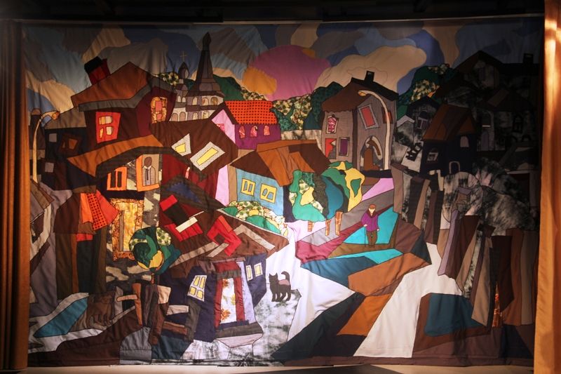Декоративно-театральный задник «Встреча с Александром Вампиловым», выполненный в технике аппликации из ткани