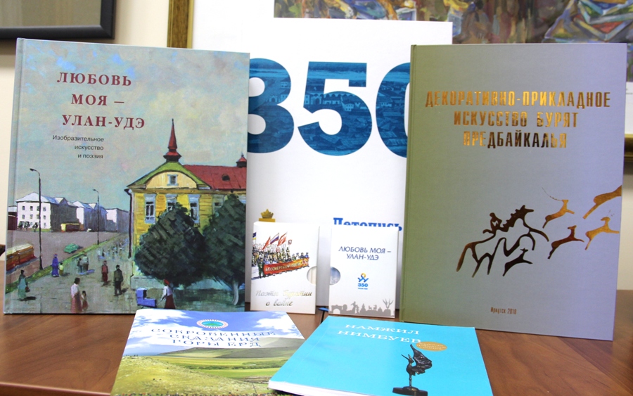 Фотоотчет Анатолия Бызова. Октябрь для библиотеки Центра А.Вампилова ознаменован большим и качественным пополнением! В читальном зале появилось 9 новых книг, посвящённых культуре бурятского народа, городу Улан-Удэ и его творцам. Директор Центра Галина Солуянова во время своей командировки в Улан-Удэ получила в дар от Центральной городской библиотеки им. И.К. Калашникова и её читателей потрясающие по содержанию и оформлению книги. Теперь полки библиотеки пополнили два поэтических сборника, выход которых был приурочен к 350-летию Улан-Удэ: «Любовь моя – Улан-Удэ» (песни и стихи на русском и бурятском языках) и «Поэты Бурятии о войне», биобиблиографический указатель «Намжил Нимбуев», посвящённый одному из известнейших поэтов Бурятии со сложной творческой судьбой. Украшением библиотеки стали три шикарных подарочных альбома: «Улан-Удэ – яркая столица Байкала», «Любовь моя – Улан-Удэ» (альбом изобразительного искусства и поэзии, посвящённые теме города и его восприятия авторами XX-XXI веков). А также в дар был получен монументальный труд – книга «Летопись города Улан-Удэ», в которой подробно указана хронология событий истории города. Вторым неожиданным источником пополнения библиотеки стали курсы повышения квалификации, на которых Галине Солуяновой «Центром культуры коренных народов Прибайкалья» были переданы два буклета и подарочная книга-исследование, посвящённые культуре бурят Прибайкалья. История Ёрдынских игр раскрывается в «Сокровенных сказаниях горы Ёрд» и «Возвращении к истокам». А впечатляющий альбом «Декоративно-прикладное искусство бурят Предбайкалья» предлагает читателям серьёзное исследование, иллюстрированное яркими фотографиями и графикой. Благодарим дарителей за такие красивые и интересные подарки и приглашаем всех интересующихся материальной и духовной культурой бурятского народа, а также историей города Улан-Удэ в наш читальный зал!
