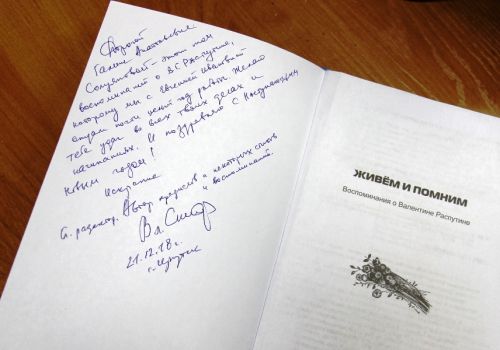Живём и помним. Воспоминания о Валентине Распутине. Форзац с автографами писателя
