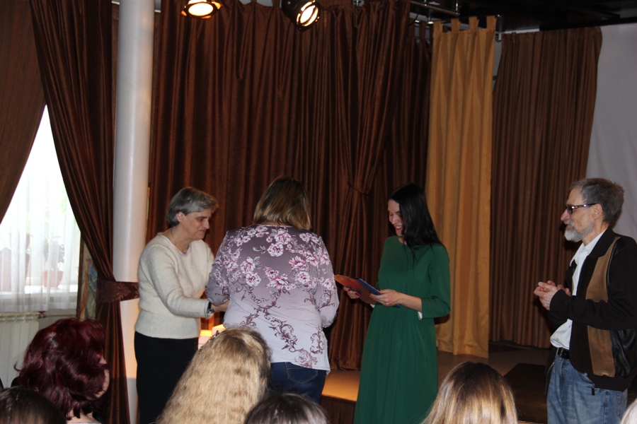 Фотоотчет Анатолия Бызова. В пятницу в Культурном центре Александра Вампилова состоялось торжественное награждение победителей литературно-исследовательского конкурса «ЛИК. Александр Вампилов», проводимого кафедрой новейшей русской литературы Иркутского государственного университета, Музеем В.Г. Распутина и Культурным центром Александра Вампилова. Победители и призёры конкурса, а также их учителя приехали в Литературно-театральный салон Дома драматурга из разных городов области: из Иркутска, Тулуна, Новой Уды, Усть-Кута, чтобы получить свои заслуженные дипломы, подарки-книги, посвящённые творчеству Александра Вампилова, и добрые пожелания от доктора филологических наук, профессора Иркутского государственного университета, вампиловеда Сергея Ростиславовича Смирнова; от кандидата филологических наук, кандидата культурологии, научного сотрудника музея В. Г. Распутина Валентины Яковлевны Ивановой и от Культурного центра Александра Вампилова. После торжественной части ребята продолжили погружаться в мир Александра Вампилова: посмотрели фильм о драматурге, познакомились с мемориальной экспозицией «На антресолях…», где увидели личные вещи Александра Вампилова и предметы его времени. Также посетили Картинную галерею, осмотрели уникальную коллекцию работ художников Иркутской области и России. Было очень приятно видеть участников конкурса, их умные глаза, заинтересованные, светлые лица. Возможно, некоторые из них только соприкоснулись с творчеством нашего великого земляка, и этот конкурс стал для них первым шагом в его неповторимый мир, но надеемся, что это знакомство с его произведениями не закончится никогда. Раз за разом они будут находить в его пьесах и рассказах новые глубины, получать ответы на самые важные и серьёзные вопросы, которые ставит жизнь. Поздравляем! Желаем не переставать искать, изучать, развиваться, любить литературу и творчество Александра Вампилова! Верим, что многие конкурсанты станут добрыми друзьями и постоянными гостями Дома драматурга!