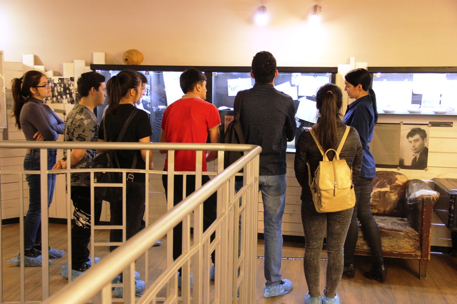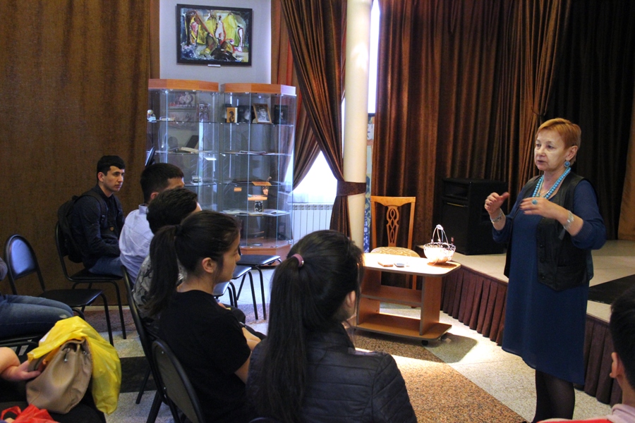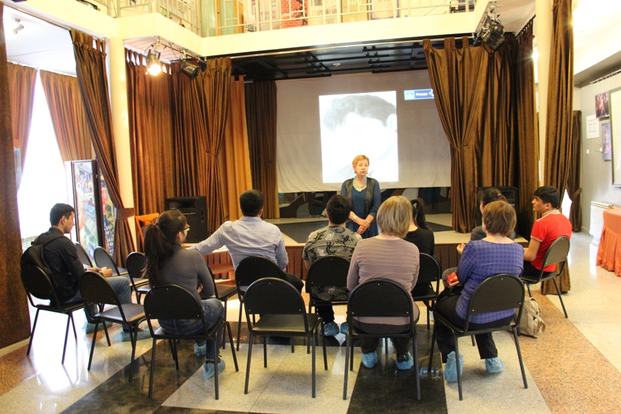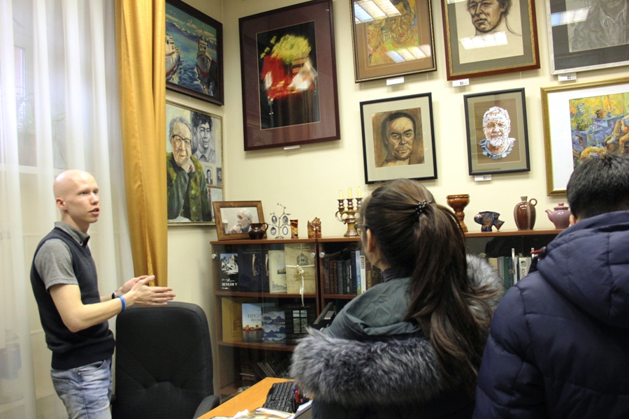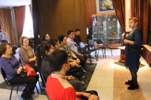 Фотоотчет Анатолия Бызова. Вчера Культурный центр Александра Вампилова вновь принимал иностранных гостей - студентов 1 и 2 курса Иркутского государственного медицинского университета. Ребята приехали в Иркутск учиться профессии врача из Узбекистана и Туркменистана, однако они не только постигают медицину, но и серьёзно настроены познакомиться с русской культурой. Вместе со своими преподавателями они посещают знаковые культурные места города и пришли в Дом драматурга, чтобы погрузиться в мир Александра Вампилова. Будущие врачи услышали яркое и насыщенное интересными фактами «Слово о Вампилове» в изложении директора Центра Галины Солуяновой, увидели небольшой фильм о драматурге, осмотрели экспозицию «На антресолях…», в которой представлены его личные вещи. Следом гости Центра перешли в Картинную галерею, где увидели портреты Александра Вампилова, его окружения, виды Иркутска, байкальские пейзажи, портреты классиков русской литературы и скульптуры. Студенты до посещения Центра не были знакомы с пьесами Александра Вампилова, но, надеемся, что после знакомства с личностью и судьбой драматурга, в них проснётся сильное желание прочитать его неповторимые, тонкие и ироничные пьесы и увидеть поставленные по ним спектакли. Культура – лицо страны. Она открывает самые глубинные качества народов. Уверены, что через вечное творчество Александра Валентиновича