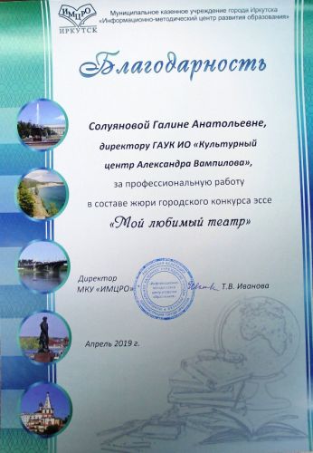 Городской конкурс эссе Мой любимый театрБлагодарственное письмо