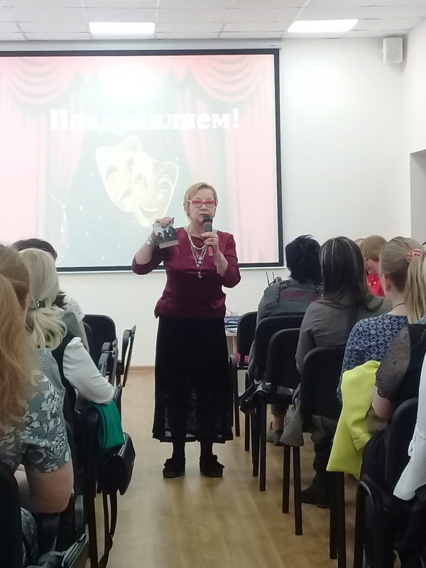 Посчастливилось вчера побывать в Доме учителя на праздничном подведении итогов муниципального (заочного) конкурса эссе, посвящённого Году театра в России, «Мой любимый театр». Должна отметить, что недавно созданный городскими властями Дом учителя проводит глубокую профессиональную, творческую, человеческую работу для учительства разного уровня сферы образования (впрочем, для детей и их родителей тоже). Директор Татьяна Николаевна Суворова держит высокую планку художественности и теплоты приёма гостей. Очень серьёзную роль в проведении мероприятий играет сценарист, режиссёр, продюсер Светлана Фёдоровна Чудинова. Собрать её усилиями вчера плеяду актёров школьного, студенческого, профессиональных театров дорогого стоит. Когда бы пришлось мне увидеть и услышать Давида Токмаева, который прочёл стихотворение В.Гафта «Театр»; посмотреть отрывок из премьерного спектакля «Карлсон, который…» образцового театрального коллектива «Зеркало» Центра детского творчества «Октябрьский» (руководитель Каролина Викторовна Полесье); услышать вокальное трио геологического техникума (Тимур Иванов, Дарья Тереза, Дмитрий Ешкин)  и солиста Дмитрия Ешкина; обрадоваться неожиданной встрече с ведущим мастером сцены, актрисой ТЮЗа им.А.Вампилова Ольгой Дерфлер; вовлечься в пленительное музыкальное пространство заслуженного артиста РФ, солиста ИМТ им. Н.Загурского Виктора Лесового.