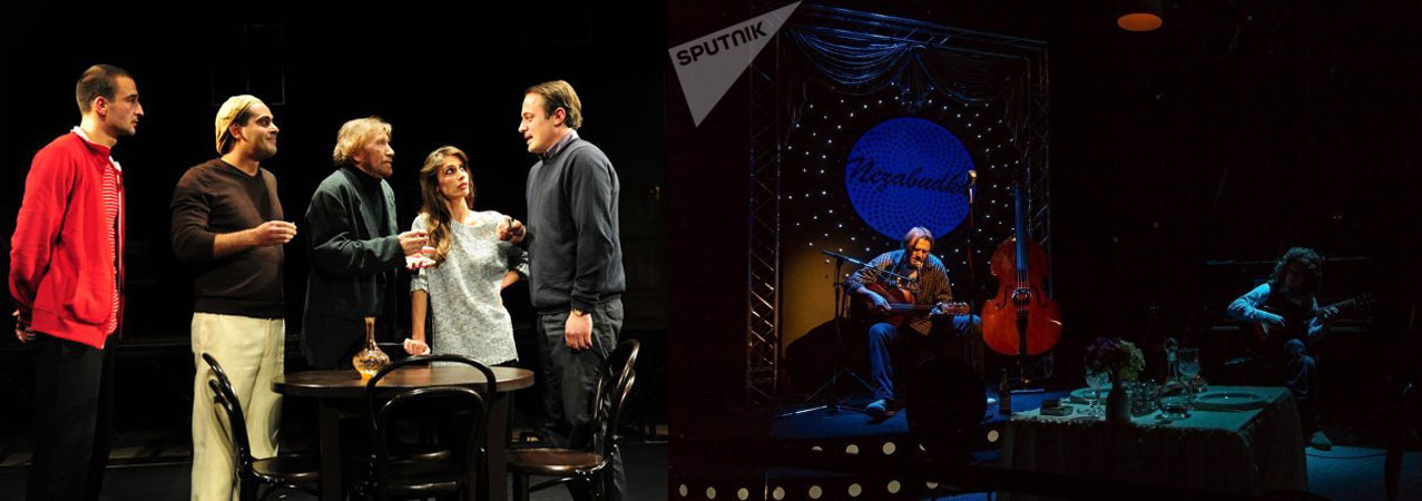 Фотоотчет Анатолия Бызова. К семилетию Культурного центра Александра Вампилова информационный портал «Глагол. Иркутское обозрение» приготовил приятный сюрприз – публикацию «Вампилов на четырёх зарубежных сценах». Статья предлагает познакомиться с перечнем спектаклей, поставленным по пьесам нашего земляка, которые в настоящее время идут в русских театрах за пределами России. «В честь дня рождения Культурного центра Александра Вампилова «Глагол» решил представляет перечень спектаклей, поставленных по пьесам нашего земляка, которые в настоящее время идут в русских театрах за пределами России. Напомним, что сегодня Центру Вампилова в Иркутске исполняется семь лет. Русский театр Эстонии (Таллинн) 14 мая представит «Утиную охоту». Начало в 19:00. Это трехчасовой спектакль (внимание, в спектакле курят!), в котором персонаж, помещенный в советский контекст, все больше теряет человеческие черты. Историю Зилова можно назвать бегом на месте или замкнутым кругом. Всё действие перенесено в ресторан, где и разыгрывается в вечном застолье трагедия Зилова. В ресторане, естественно, звучит музыка, песни советских времен, помогающие почувствовать атмосферу 70-х годов минувшего века. Премьера спектакля состоялась 19 апреля 2018 года. Режиссер постановки - Камран Шахмардан, художник - Валерий Полуновский. Спектакль «Утиная охота» стал главным событием II международного фестиваля М.А.Р. в Баку. Государственный академический русский драматический театр Узбекистана (Ташкент) 5 мая показал трагикомическое представление «Провинциальные анекдоты», образованное из одноактной пьесы «Двадцать минут с ангелом» и пьесы «Историю с метранпажем». Продолжительность спектакля с антрактом 2 часа. Премьера состоялась 5 ноября 2016 года. Режиссёр-постановщик – Михаил Каминский. Главного героя - администратора гостиницы Калошина – играет заслуженный артист Узбекистана Олег Васильев. В Тбилисском государственном театре имени Грибоедова идет «Старший сын» - комедия в одном действии. Режиссер-постановщик - главный режиссер театра Георгий Маргвелашвили, художник-постановщик – народный художник Грузии, лауреат Государственной премии им. Ш. Руставели Мириан Швелидзе. Интересно, что «Старшего сына» на сцене Тбилисского театра впервые поставили в 1974 году - это была одна из первых постановок Вампилова в СССР, и с нее началась новая театральная эпоха. Премьера этого спектакля состоялась 7 октября 2014 года в рамках VI Тбилисского международного театрального фестиваля в ознаменование 50-летия написания пьесы. Продолжительность спектакля 1 час 40 минут без антракта. В апреле 2015 «Старшего сына» показали на международном театральном фестивале «Встречи в России» (Санкт-Петербург). В афише Акмолинского областного русского драматического театра (Казахстан) 25 мая стоит лирическая драма «Вальс дождя» по мотивам «Старшего сына». Премьера состоялась 26 февраля этого года. Режиссер – заслуженный артист Казахстана, лауреат национальной премии 2006 года «Человек года» Талгат Теменов». На фото спектакли театров Тбилиси и Таллина. Материал доступен по ссылке.