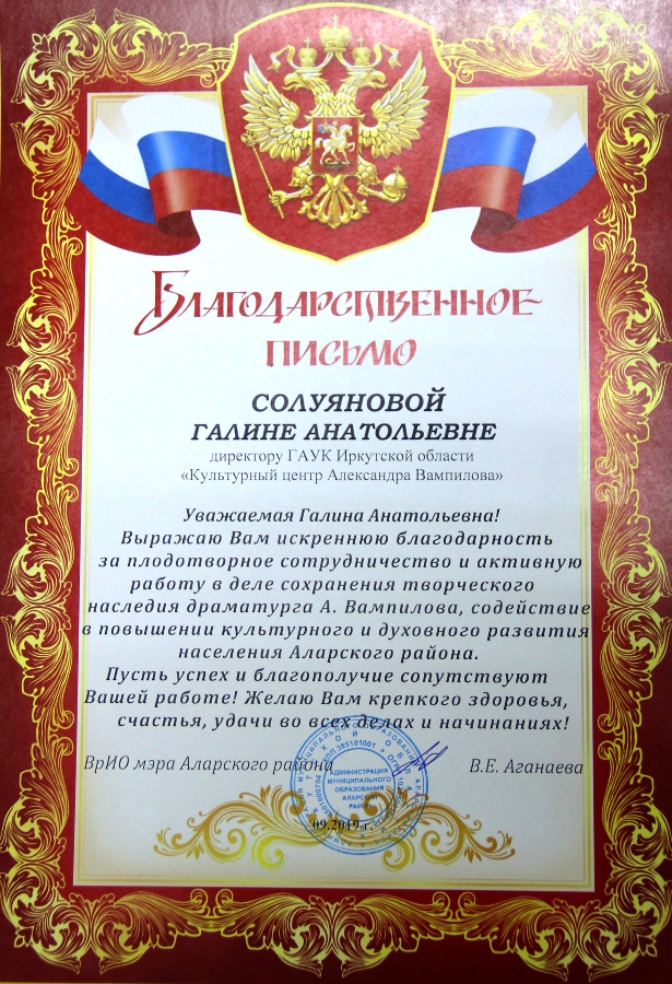 Фотоотчет Анатолия Бызова. Галина Солуянова, директор Культурного центра Александра Вампилова, вернулась из командировки с малой родины Александра Вампилова. В Аларском районе в пятницу, 6 сентября, состоялись пять встреч с земляками драматурга. Всего «Слово о Вампилове» - историю о жизни, судьбе и творчестве писателя услышали 147 человек. В Егоровской основной школе, в Нельхайской основной школе и в Тыргетуйской оснавной школе лекцию посетили школьники с перового по одиннадцатый класс и их учителя. В Могоеновском СДК слушателями стал педагогический коллектив, а в Межпоселенческой центральной библиотеке им. А.В.Вампилова - жители Кутулика. У Галины Анатольевны осталось самое приятное впечатление от творческих встреч, потому что в Аларском крае совершенно особое отношение к Александру Валентиновичу – им гордятся, знают, о нём говорят, его читают, любят и бережно чтут его память! Хотим отдельно поблагодарить директора Межпоселенческой центральной библиотеки им. А.В.Вампилова Веру Трофимовну Петрову и сотрудников библиотеки за содействие в организации встреч! И предлагаем вашему вниманию фотоотчёт из командировки.