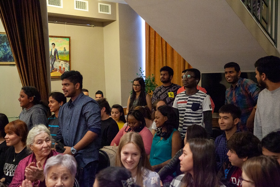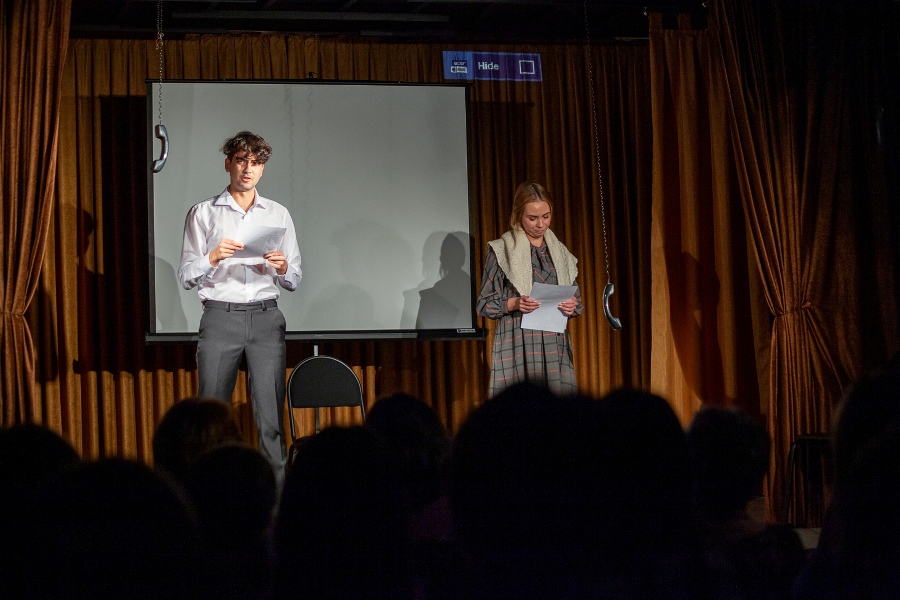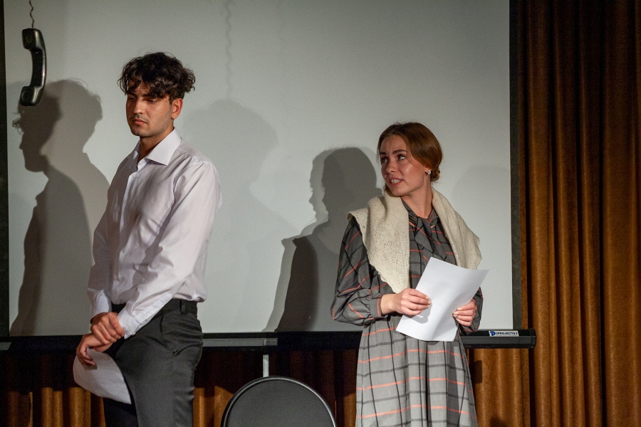 Фотоотчет Анатолия Бызова. Вчера в Культурном центре Александра Вампилова в рамках Года театра в России состоялась творческая встреча «Трасса Судьбы», посвящённая 100-летию со дня рождения драматурга Игнатия Дворецкого. Игнатий Моисеевич родился в Слюдянке и создал 19 пьес, которые ставились на разных сценах страны, экранизировались. Его пьесы пользовались большой популярностью, с произведениями работали выдающиеся режиссёры. Но жизнь его отнюдь не была безоблачной – ошибка юности (был арестован за воровство) - и 8 лет жизни его прошло в лагерях. Именно эта трагическая деталь жизни Игнатия Дворецкого и послужила отправной точкой в создании вечера для режиссёра - ведущего мастера сцены, актрисы ТЮЗа им.А.Вампилова Наталии Маламуд. Перед сценой в удобном кресле с книгой и листами бумаги сидит режиссёр (арт. Никита Никитин), который обозначает вехи-акты судьбы Игнатия Дворецкого. На сцене два следователя (Наталия Маламуд и Николай Кулебякин) листают личное дело Игнатия Моисеевича, рассказывают о его пути. Периодически звучат воспоминания о драматурге людей, хорошо знавших его, – они были представлены как свидетельские показания. В роли такого свидетеля выступила и Галина Солуянова, игравшая в пьесе Игнатия Моисеевича «Мужчина семнадцати лет» на сцене иркутского ТЮЗа, тогда ещё не носящего имени А.Вампилова. И, конечно, любой вечер, посвящённый драматургу, сложно представить без отрывков из его произведений. Екатерина Шлепатухина, Дмитрий Ахулаев, Максим Максименков сыграли отрывки из знаменитых пьес «Трасса» и «Мужчина семнадцати лет». А Дмитрий Иванов исполнил роль самого Игнатия Моисеевича. Из его уст звучали стихи и воспоминания драматурга. Вечер получился замечательным: публика очень тепло встречала актеров. И это несмотря на то, что для многих гостей вечера русский язык не является родным. «Трассу Судьбы» посетила большая группа студентов-иностранцев Иркутского государственного медицинского университета. О Игнатии Дворецком узнали ребята со всего мира: из Индии, Египта, Южной Африки, Зимбабве, Нигерии, Монголии, Узбекистана, Туркменистана, Таджикистана, Азербайджана и даже из Кот-д`Ивуара. Мы хотим поблагодарить всех участников и создателей вечера! И сегодня пьесы Дворецкого, несмотря на изменившуюся реальность, по содержанию своему остаются актуальны и интересны. Важно говорить о талантливых людях, рождённых сибирской землёй, тем более, в связи с такой значительной датой, как 100 лет со дня рождения! Предлагаем вашему вниманию фотографии события. Автор: Иван Кешиков.