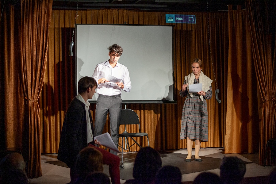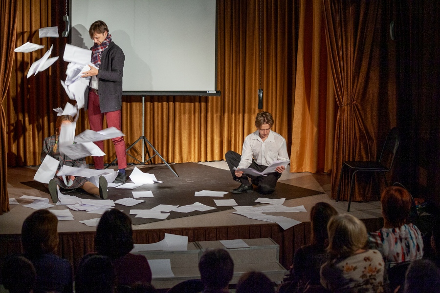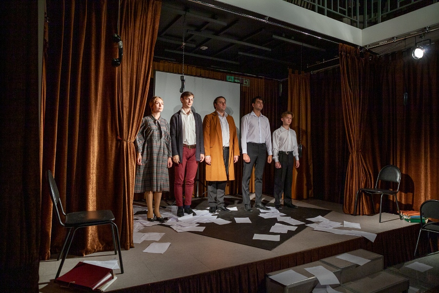 Вместе с актёрами ТЮЗа они страница за страницей оживляли «личное дело Дворецкого» - жизнь, которую прожил драматург, и всё это в предлагаемых обстоятельствах - репетиция спектакля.