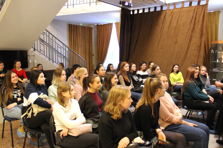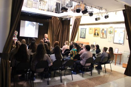 Фотоотчет Анатолия Бызова. Пятница для Культурного центра Александра Вампилова прошла очень насыщенно и была связана с будущими педагогами. С самого утра в стенах Литературно-театрального салона прозвучало «Слово о Вампилове» от директора Центра Галины Солуяновой для студентов 1 и 4 курсов, обучающихся по специальности дошкольное образование Иркутского педагогического института ИГУ. Через эмоциональную и яркую лекцию будущие педагоги узнали о детстве Александра Вампилова, его семье, окружении, о пьесах и их сложном пути на сцены страны. После студенты осмотрели экспозицию «На антресолях…», где представлены личные вещи драматурга, его черновики, афиши и программки спектаклей разных лет из разных географических пространств. А также познакомились с тематической библиотекой Центра и Картинной галереей, где собрана прекрасная коллекция работ мастеров живописи Иркутской области и России. В этот же день Галина Солуянова стала участником мероприятия для педагогических работников образовательных организаций города Иркутска, посвящённых закрытию Года Театра в России, проводимого департаментом образования города Иркутска. Для собравшихся гостей она сыграла отрывок из моноспектакля «Мне подменили жизнь…», поставленного Валентином Зверовщиковым на стихи Анны Андреевны Ахматовой. Спектакль, сотканный из талантливой поэзии и её глубокого понимания актрисой, никогда не оставляет зрителей равнодушными. Прекрасно, что удалось показать его небольшую часть в уходящем году, прошедшем под эгидой Театра и именно тем людям, которые работают с детьми и ежедневно формируют их душу.
