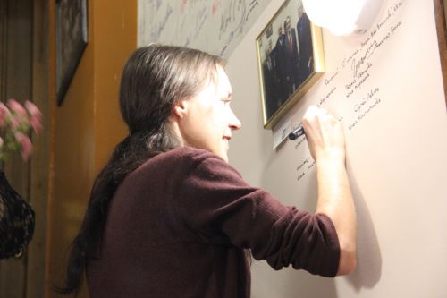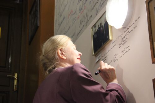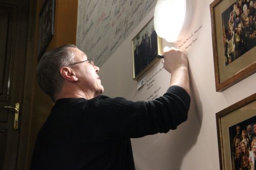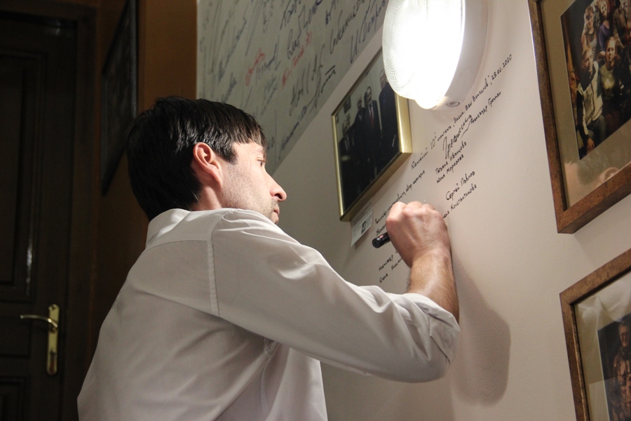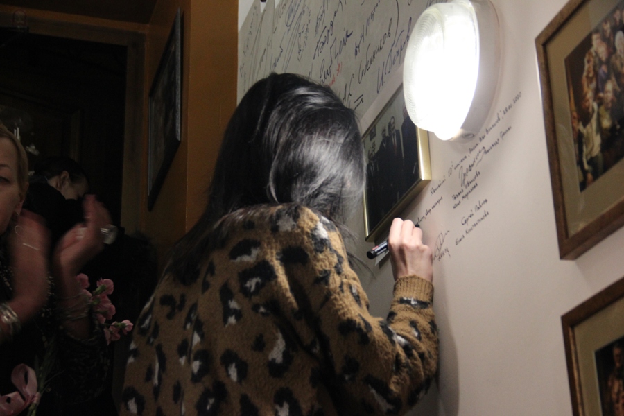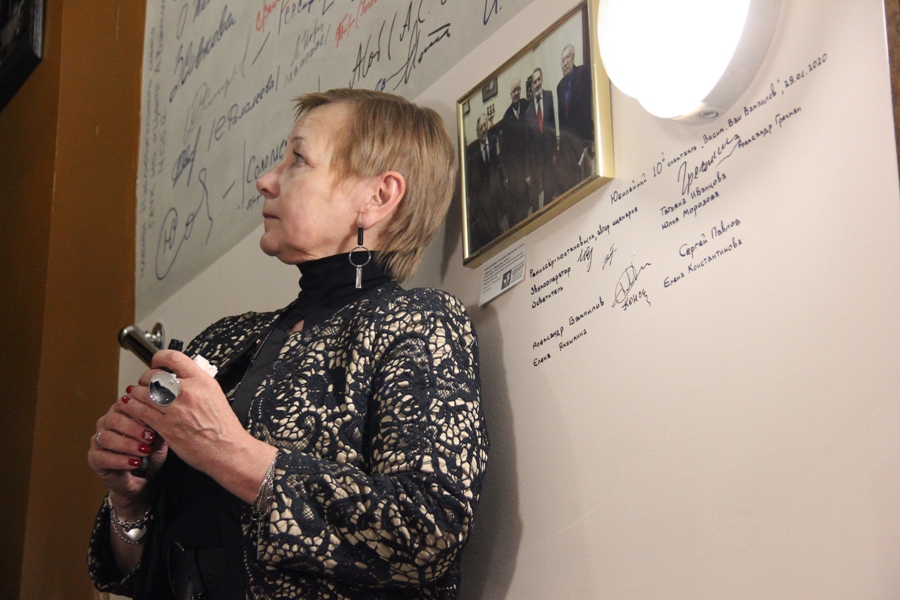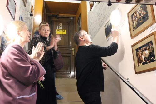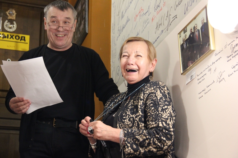 Фотоотчет Анатолия Бызова. Вчера, 29 января, состоял 10-ый показ спектакля «Засим. Ваш Вампилов»! Уже десять раз история жизни и творчества Александра Вампилова раскрылась перед зрителями в этой удивительной, тончайшей по подаче материала постановке, созданной Александром Гречманом, и талантливо воплощённой актёрами Еленой Константиновой и Сергеем Павловым! После спектакля, в честь его первой круглой даты, состоялось небольшое торжественное событие! Теперь спектаклю посвящено отдельное место на «Стене признательности» Центра, где в дружеской атмосфере оставили автографы все участники спектакля: режиссёр – Александр Гречман, актёры – Елена Константинова и Сергей Павлов, звукооператор – Татьяна Иванцова, осветитель – Юлия Морозова. Как известно, в театре именно первые 10 показов считаются премьерными. Теперь «Засим. Ваш Вампилов» вступает в зрелый период. Пусть у него будет долгая творческая жизнь и своя публика! И от показа к показу он открывается по-новому для участников и для зрителей! Предлагаем вашему вниманию фоторепортаж с автограф-сессией, сделанный Артёмом Глебовым: