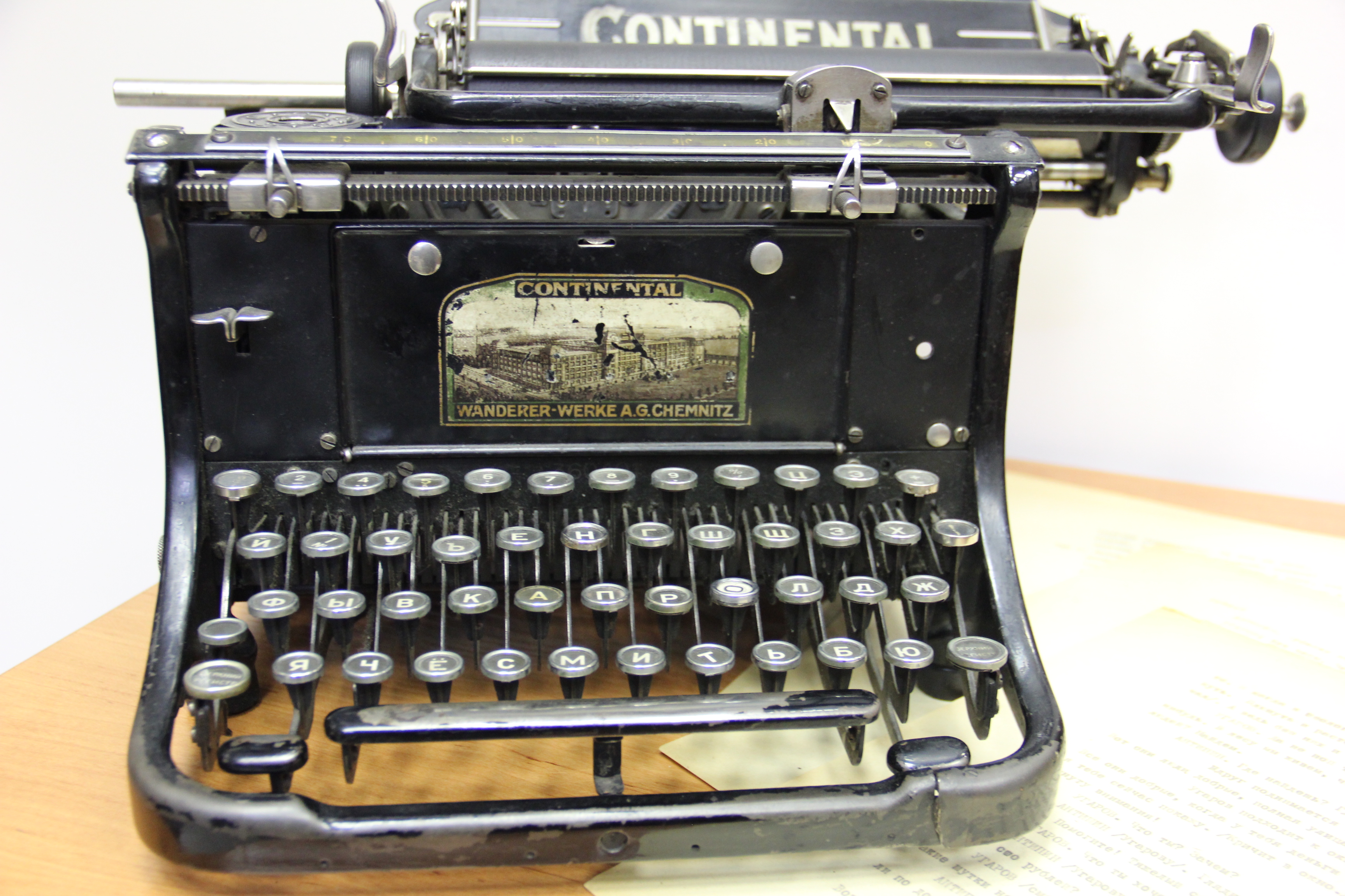 Хотим рассказать про новый экспонат - немецкую печатную машинку фирмы "Continental", переданный Дому драматурга Ольгой Васильевной Старициной. Эта печатная машинка представляет собой практически антикварную ценность, она изящна и красива, несёт в себе отпечаток тех лет, когда жил и Александр Вампилов. Но самое главное - эта машинка, непосредственно связана с творчеством Александра Вампилова.