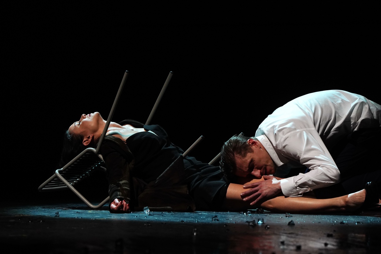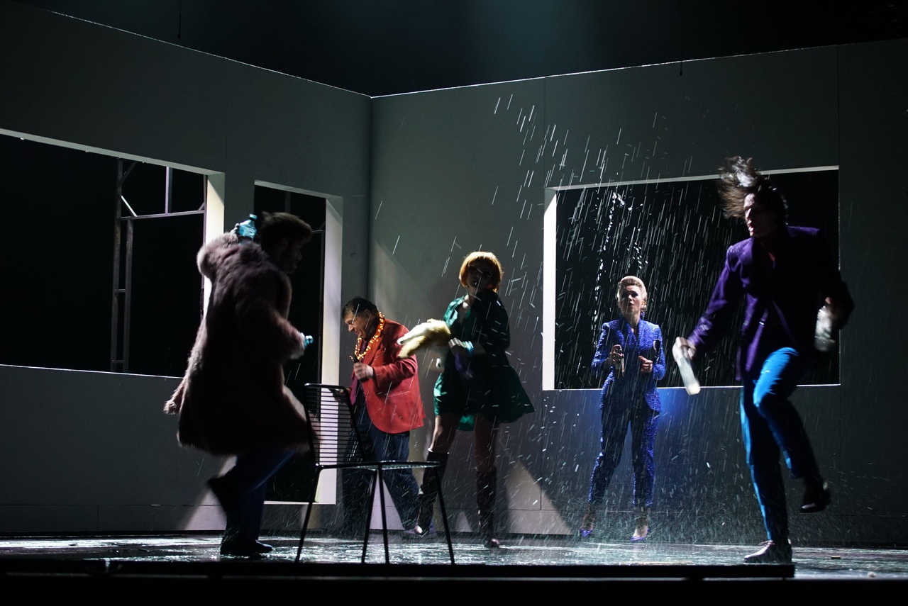 Фотоотчет Анатолия Бызова. В сентябре в театре им. Ленсовета состоялась долгожданная премьера спектакля "Утиная охота". Предлагаем вашему вниманию рецензию на премьеру портала "Зонд ньюс". Пустые глазницы дома смотрят в темноту, стены прислушиваются к шуму дождя и ветра, выхватывая отдельные фразы из разговоров прохожих. Дом уже не хранит былое тепло, лишь является надгробием своему светлому прошлому. В премьерном спектакле Романа Кочержевского «Утиная охота» чувства между главными героями давно угасли, хотя они тщетно пытаются вернуться к своему счастью. Мотив непрекращающегося дождя, который рисует безрадостное состояние души героев, является одним из центральных в спектакле. Герои захлёбываются во всемирном потопе страстей, глотают ртом воздух, пытаются удержаться на плаву в этом стремительно меняющемся мире. Режиссер откладывал премьеру полгода: перед началом пандемии в театре Ленсовета состоялся главный прогон, а затем наступила томительная пауза ожидания снятия ограничений, которая, несомненно, смогла обогатить спектакль, наполнив не только Зилова, но и всех остальных персонажей тоской-мечтой об обретении гармонии. Кажется, что главный герой Зилов в исполнении Виталия Куликова исключительно легкомысленный человек, который пытается убежать от проблем. Жизнь все время стремится отрезвить его, с каждым днём посылая более серьёзные испытания, он на несколько минут останавливается в своей безумной гонке и жажде удовольствий, но затем вновь стремится им навстречу, подхваченный эмоциональным потоком. Проблемы в семейной жизни, накалившаяся ситуация на работе, ненужный роман, смерть отца, отъезд жены – цепочка обстоятельств, которая рикошетит от эгоизма Зилова и абсолютного равнодушия к человеческим эмоциям, с каждой минутой все туже затягивает петлю на его шее. Виталий Куликов играет небрежного в словах, себялюбивого человека, поступки которого вызывают отторжение. Но если разобраться и копнуть поглубже, оказывается, что этот человек просто не умеет справляться с трудностями: его инфантильное сознание лишь подсказывает ему пути побега от проблем. Герой чувствует, что обязательств становится все больше, а привычка жить в свое удовольствие не позволяет изменить свое отношение к жизни и требует постоянной подпитки. Но от себя не уйдешь, и никакая мечта вроде утиной охоты не поможет разобраться с самим собой, лишь оттянет на время решение вопросов. В пьесе Александра Вампилова смещены временные пласты – настоящее постоянно перемешивается с воспоминаниями прошлого, которое пытается отрефлексировать герой. Его настойчивая мысль об утиной охоте, которая принесет ему блаженное ощущение слияния с природой, безответственное спокойствие – пронизывает спектакль, это мечта героя, которая греет его душу, озаряя светом. Именно там он сможет остановить время, оказаться в блаженном одиночестве, растворясь в мире. Постоянная активность персонажа и его шутливая небрежность, включение во всевозможные события, едкие и точные замечания определяют в нем интеллектуальную личность, которая хочет забыть о грузе мыслей, накопившихся в голове. Череда событий вполне естественна и закономерна: жизнь не прощает человеку того, что он забывает о своей душе. Лаура Пицхелаури играет Галю, жену Зилова. Она на контрасте с ним всегда на