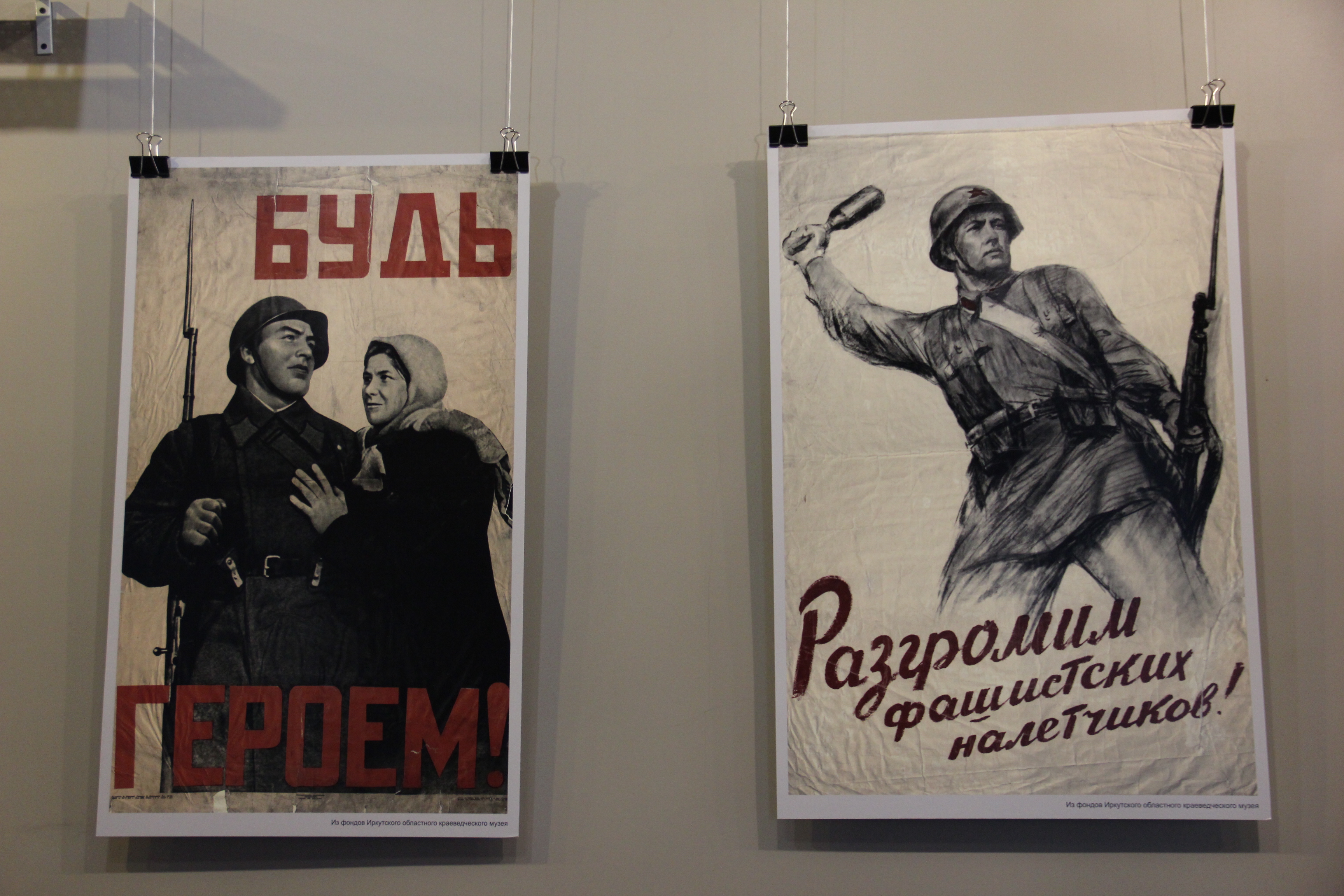 Фотоотчет Анатолия Бызова. Вчера, 26 апреля, в 15-00 в Литературно-театральном салоне Центра А.Вампилова открылась выставка фронтовых плакатов «За Родину, за Честь, за Свободу!», посвящённая 80-летию со дня начала Великой Отечественной войны. Открытие выставки приурочено к большому празднику - Дню Победы! В экспозиции представлены копии фронтовых плакатов из фондохранилища Иркутского областного краеведческого музея. Ведущей вечера стала директор Центра Галина Солуянова. Она говорила с посетителями о годах Великой Отечественной войны, о поколении победителей, о том, как 1941-1945 годы отразились на истории её семьи. Конечно, прозвучала и бессмертная поэзия о тех страшных и героических годах и была показана кинохроника под аккомпанемент военных песен. После торжественной части открытия зрители осмотрели выставку. Советские плакаты военных лет, как правило, являются произведениями изобразительного искусства и несут ценность как элементы советского культурного наследия. В экспозиции представлены копии плакатов 1941-1942 годов, созданных художниками Н.Коневым, В.Корецким, В.Ивановым, М.Бри-Бейн, Ф.Бочковым, С.Боим, Е.Поволоцкой, Б.Ефимовым, Н.Долгоруковым, Н.Денисовым, Н.Ватолиной из фондохранилища Иркутского областного краеведческого музея. Мужественные, непреклонные, готовые отдать последнюю каплю крови, приближающие, как могли, Великий День Победы – такими представали люди на фронтовых плакатах, такими были они и в жизни – герои, которым мы благодарны за каждый день нашей мирной и свободной жизни! Выставка будет доступна для посещения до 15 июня.
