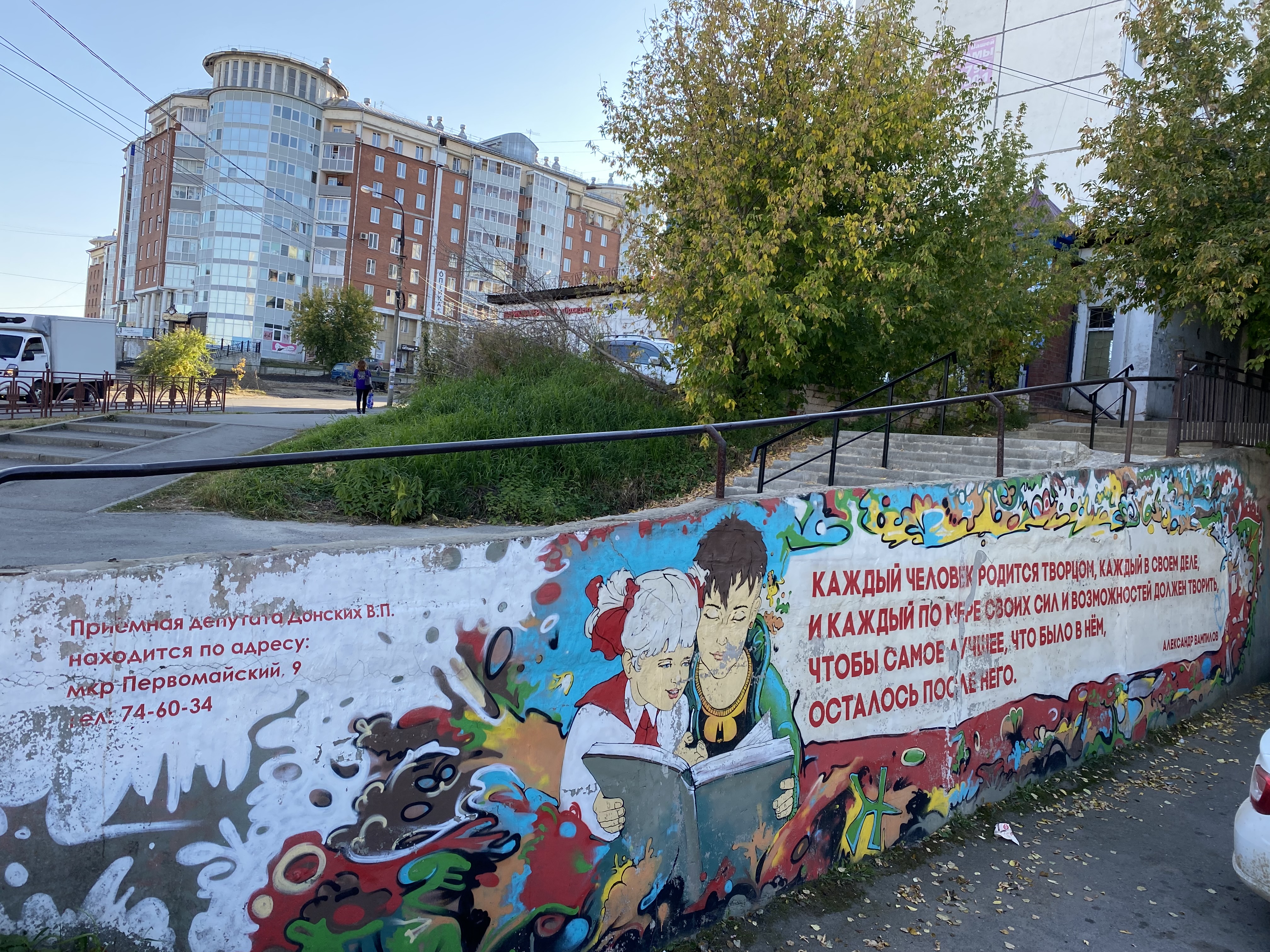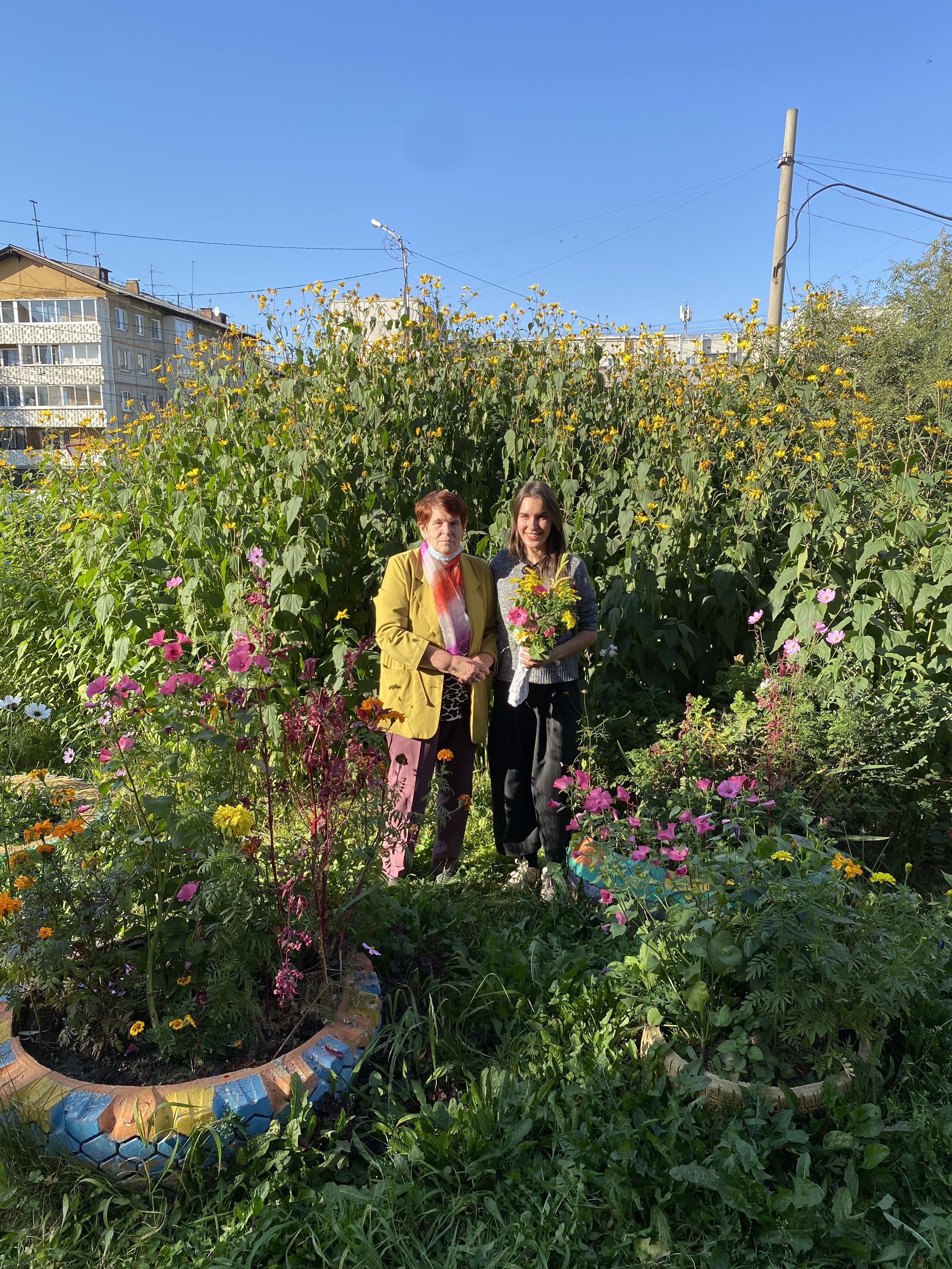 Фотоотчет Анатолия Бызова. Сегодня всю ночь шёл дождь, и утро застало этот день по-настоящему осенним… Пожалуй, вчера мы наслаждались последним тёплым, солнечным днём. Так получилось, что для научных сотрудников Центра А.Вампилова Юлии Морозовой и Руслана Рогалёва вчерашний день оказался тёплым, солнечным вдвойне – нам посчастливилось побывать в микрорайоне «Первомайский» и посетить места, связанные с памятью А.В.Вампилова. Особенно приятным было то, что в этом походе нас сопровождала Вера Павловна Семёнова – настоящий подвижник дела увековечения памяти драматурга в родном микрорайоне, и не только. Вера Павловна известна в Иркутске своей доброй, созидающей, а главное, очень активной общественной деятельностью. Связана она не только с именем А.Вампилова – Вера Павловна помогает детским домам, активно украшает придомовую территорию и практически всю улицу Вампилова цветами, высаженными собственноручно, сама за ними ухаживает, а ведь площадь этой высадки немалая! До недавнего времени живые цветы на месте гибели драматурга в Листвянке цвели и жили её стараниями. Прошла она и с нами по всем памятным «вампиловским» местам микрорайона, пешком, и это в восемьдесят один год! Мы посетили дом с памятным фото-баннером, недавно построенный небольшой аккуратный сквер А.Вампилова, забор у поликлиники, украшенный цитатой из А.Вампилова, а затем, как истинно радушная хозяйка, Вера Павловна никуда не отпустила нас без чая и угощения! В этот день мы узнали много нового о жизни, человеческой доброте и бескорыстии… От всей души желаем Вере Павловне ещё долгих-долгих лет жизни, такой же кипучей энергии и сибирского здоровья! Без преувеличения можно сказать, что такими людьми держится наша земля… Спасибо Вам за то, что Вы делали и делаете!