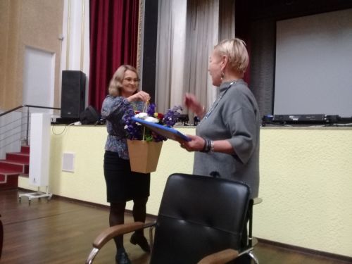 Уехали мы из воинской части в Кутулик, где, по моей просьбе, приостановились у церкви, в которой помолилась, а затем — Дом культуры, где состоялась четвёртая встреча:с работниками администрации МО «Аларский район», представителями сферы культуры (работники Межпоселенческого культурного Центра досуга, библиотекари, творческие специалисты МБУК «Краеведческий музей Аларского района»). Здесь говорила о создании Фонда и Центра А.Вампилова, о предстоящих событиях года 2022, о личностном отношении к Вампилову, отвечала на вопросы. В финале этой встречи мне вручили «Благодарность» и дизайн-букет. Спасибо, мои дорогие!