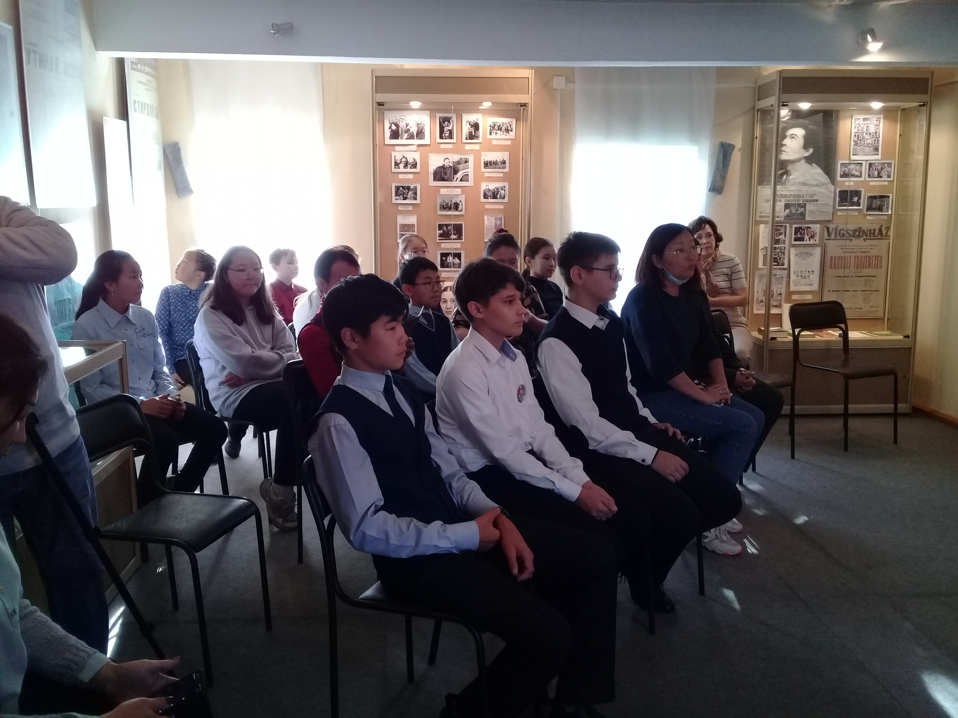А потом нас с Надеждой Кирилл перевёз в музей Вампилова, где состоялась заключительная, пятая, встреча, на которую пришли младшие школьники МБОУ СОШ — участники творческой лаборатории «Вампиловские чтения в библиотеке». С ними разговаривала о театре и что необходимо делать для того, чтобы иметь право выйти на сцену и быть интересным публике. Была и дивная «провокация» из зала, когда меня попросили прочесть стихотворение. Люблю «вызовы», ответила Ахматовой. Надеюсь, убедила слушателей и подтвердила лично, как нужно соответствовать.