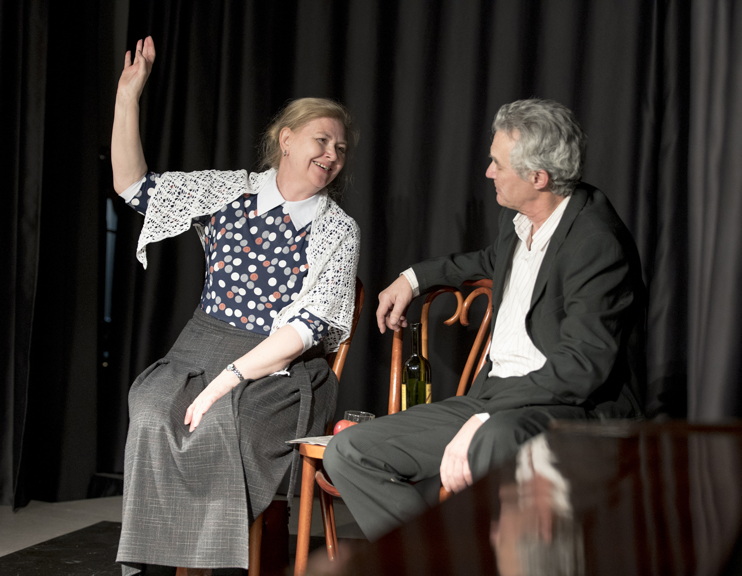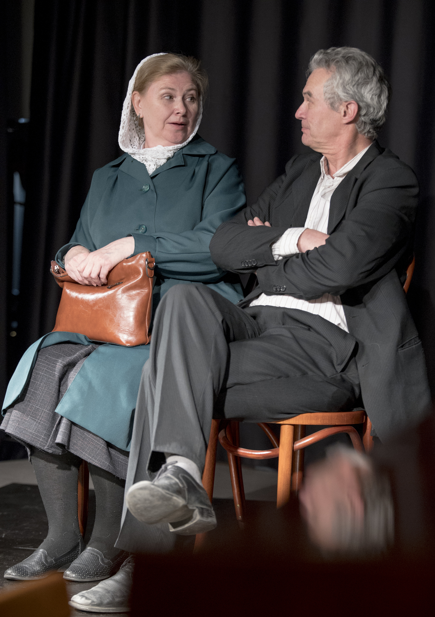 Второй рассказ Валентина Распутина, к которому обратилась постановщик Анжела Маркелова, – «Встреча». Он повествует о зрелых людях, которые случайно встретились на совещании передовиков. Когда-то прежде их объединяла любовь, но потом пути разошлись, и множество десятилетий они не видели друг друга. Блистательный дуэт актёров ТЮЗа им. А.Вампилова Елены Константиновой и Владимира Безродных подарил зрителям много поводов широко улыбнуться и возможность сопереживать и расстраиваться вместе с героями.