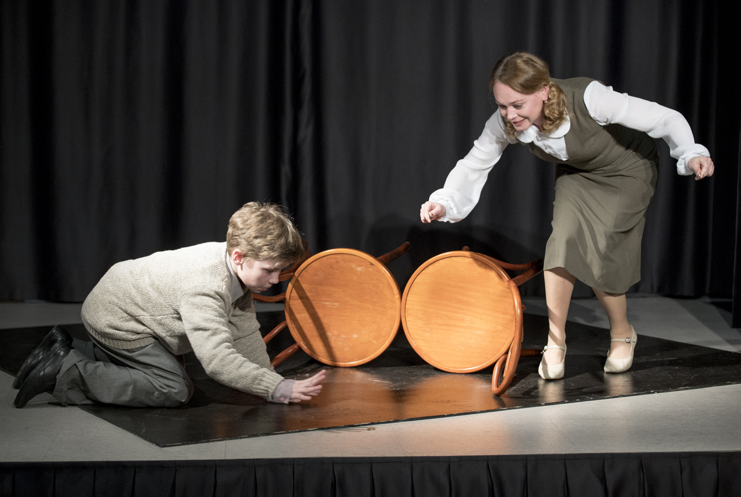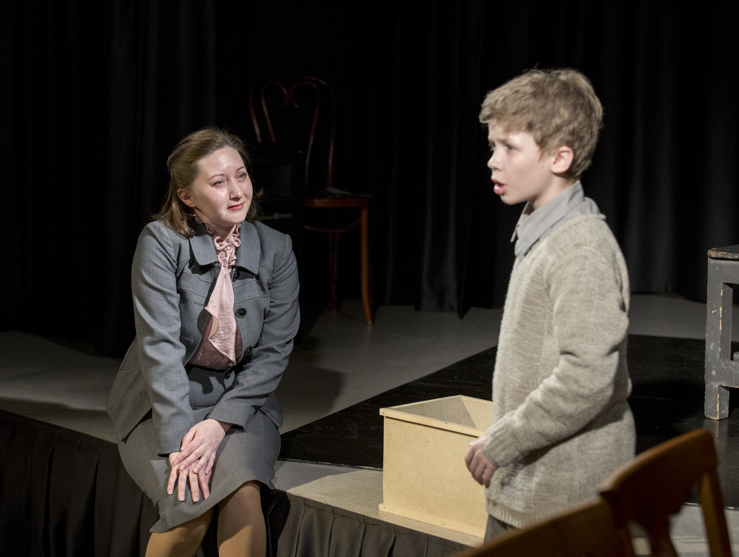 О детстве поговорили со зрителем актриса ТЮЗа им. А.Вампилова Людмила Ревтович и юный актер театральной студии «АлександриЯ» Роман Солдатенко. Они сыграли отрывки из рассказа «Уроки французского», представ в образах учительницы Лидии Михайловны и мальчика. Герои музицируют, смеются, говорят по-французски, играют в «чику», ссорятся и мирятся. Людмила Ревтович прекрасно перевоплотилась в добрую Лидию Михайловну, которая очень переживает за бедного мальчика. Она хочет позаботиться о ребёнке, дать ему любовь и тепло и, конечно, накормить, не задев его чувства собственного достоинства. Ради этого она даже готова рискнуть своей работой. В свою очередь Роман Солдатенко не отставал, он передал всю трогательность недоверчивого мальчика с непростой судьбой, который тоже переполнен любовью, но гордость часто всегда берёт над ним верх.