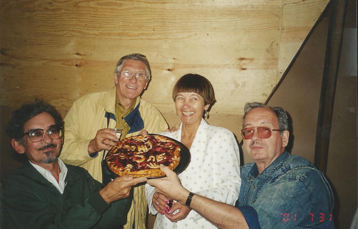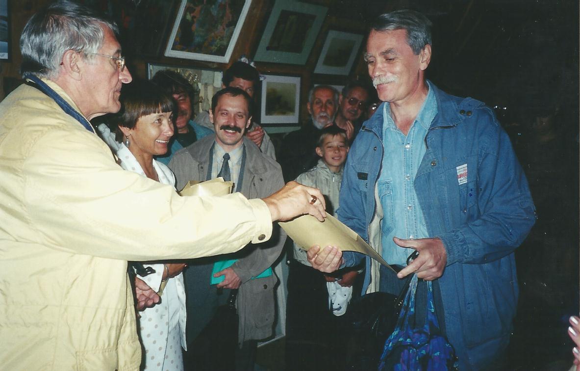 Фотоотчет Анатолия Бызова. Сегодня исполняется 17 лет Фонду Александра Вампилова, общественной организации, известной в Иркутске своими добрыми делами по сохранению имени драматурга. Издательская деятельность (выпущено 36 книг, множество литературных плакатов, календарей), организация выставок, творческих встреч, выезды со «Словом о Вампилове» в школы города и области… Но главная цель работы – сделать всё, чтобы в Иркутске появился вампиловский Дом. И вот он, результат многолетнего труда – Культурный центр Александра Вампилова, который открыл свои двери в 2012 году. Фонд стал задельем, платформой, на котором вырос Центр. И главная заслуга Фонда в том, что на пути создания вампиловского гнезда он объединил тысячи разных людей: политики, театроведы, пенсионеры, строители, доктора наук, журналисты, актёры, студенты, бизнесмены, поэты… Поэтому мы поздравляем всех, кто так или иначе когда-то помогал Фонду Вампилова. Центр возник благодаря всем нам. Благодарим и от сердца поздравляем учредителей Фонда: председателя Правления Виталия Венгера, его заместителя Галину Солуянову, директора-бухгалтера Анжелику Верхотурцеву, Юлию Соломеину, Виталия Нарожного, Маргариту Тарбееву, Любовь Васильеву, Иркутский госуниверситет, редакции «Восточно-Сибирской правды» и «СМ №1». Фотографии: 31 июля 2001 года, пятилетие Фонда.