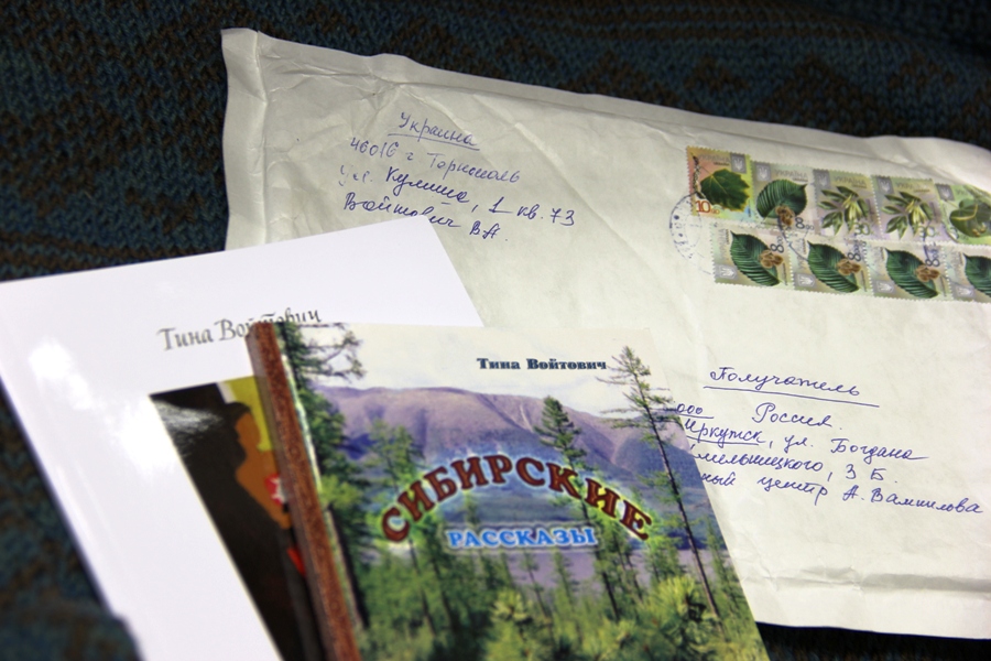 Фотоотчет Анатолия Бызова. Творчество, порядочность и добрые человеческие отношения не смогут погубить даже самые несусветные межгосударственные конфликты. Сегодня случился очередной повод вспомнить об этом: на наш адрес пришло письмо из Украины. Писательница Тина Войтович, родившаяся в Кутулике, отправила две своих книги - «Сибирские рассказы» (Тернополь, 2008) и «Просто дальше жить» (Киев, 2013). Первая посвящена Александру Вампилову. «Сибирские рассказы» - книга о сибиряках, об их труде, привычках и заботах. Перед читателем предстаёт сибирский городок ХХ века, окруженный могучей и таинственной тайгой. В «Сибирских рассказах» показано, насколько глубоко взросли простые люди в этот могучий русский край и насколько сама Сибирь взросла в них. «Кутулик расположен на Московском тракте М53, - пишет в предисловии автор. - Зимой здесь холоднее градусов на 5-10, чем в Иркутске. Летом часто наблюдается интересная закономерность: в 10 км от Кутулика есть точка водораздела. До этой точки небо голубое, дорога сухая. А в точке водораздела по небу как бы граница проведена из чёрных дождевых туч. Граница чёткая, ровная, проходит перпендикулярно дороге. Входишь в эту стену – темно, дождь... Выходишь назад – солнышко светит, небо чистое, голубое. А на дороге – чёткая граница мокрого-сухого. Невероятно впечатляет. Как будто сон…».