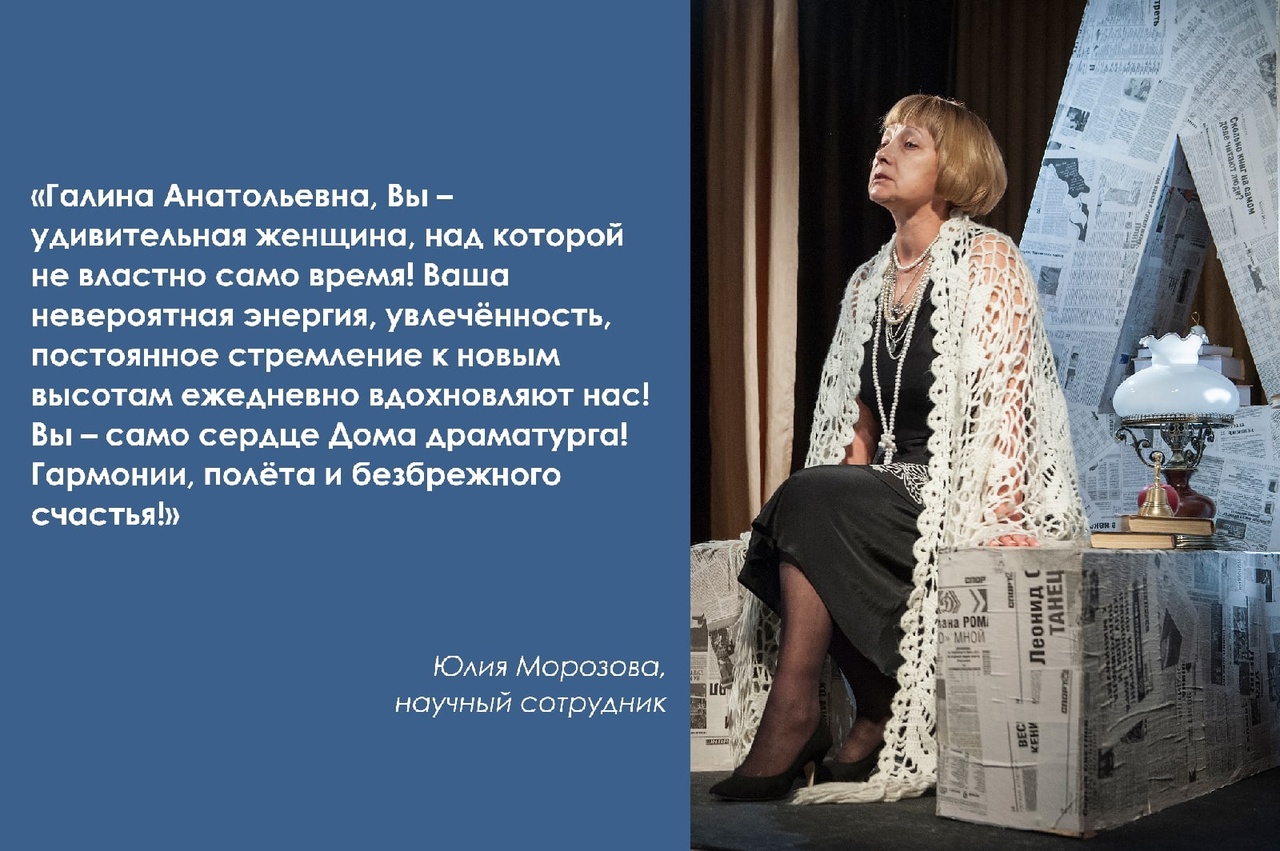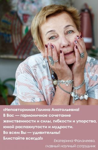 Юбилей нашего любимого, уважаемого директора — Солуяновой Галины Анатольевны. Это удивительный, многогранный человек, очень много делающий для культурной жизни Иркутска и России в целом.