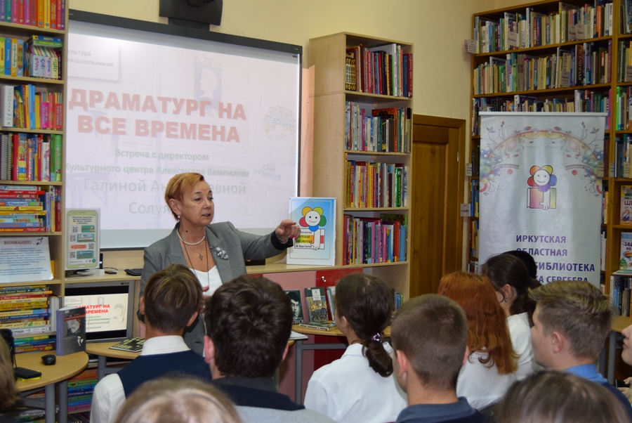 Три встречи «Слово о Вампилове» прошли для земляков драматурга - учащихся из Аларского района - СОШ п. Кутулик, Идеальской СОШ и Егоровской ООШ в стенах Дома драматурга. А 21 сентября в Иркутской детской библиотеке им. Марка Сергеева прошла встреча «Слово о Вампилове» с выступлением Галины Солуяновой для иркутских старшеклассников из СОШ № 15.