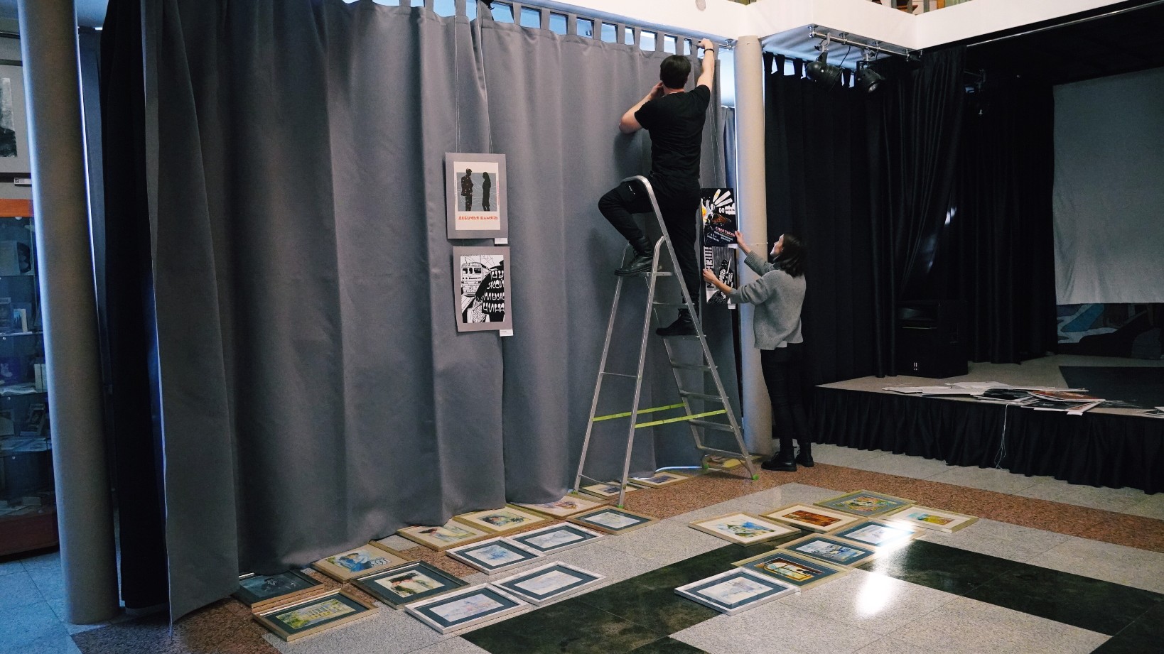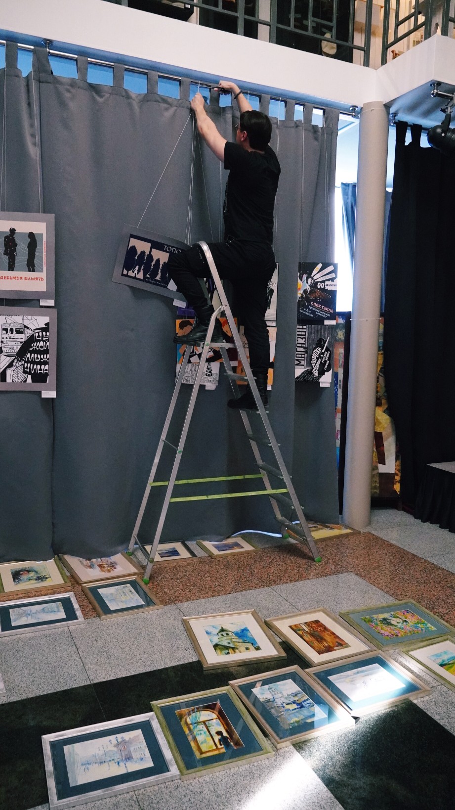 Фотоотчет Анатолия Бызова. Сегодня показываем подготовку экспозиции Дарьи Соколовской. 22 картины автор подарил Дому драматурга в прошлом году. Здесь их оформили и разместили в выставочном пространстве. Теперь работы Дарьи вошли в программу постоянной экскурсии по галерее Центра. Посмотреть их может каждый посетитель, а экскурсоводы с удовольствием расскажут об истории создания и сюжетах этих картин.