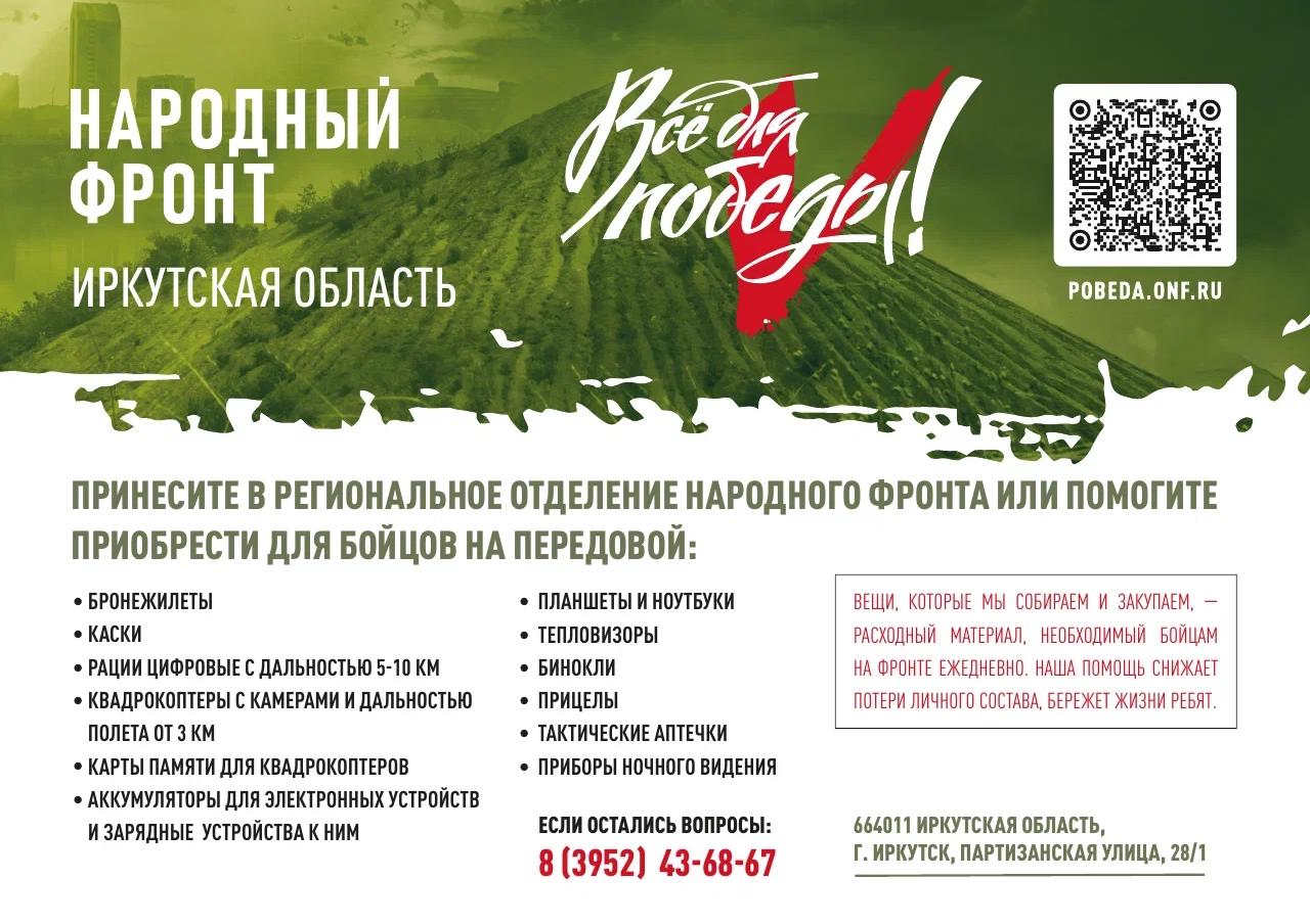 Фотоотчет Анатолия Бызова. Проект НАРОДНОГО ФРОНТА «Всё для Победы!» Все собранные средства будут потрачены только по заявке от воинских подразделений, в которых есть призывники из Иркутской области, и пойдут на приобретение высокоточной техники и амуниции. Отчеты о затраченных средствах будут опубликованы на сайте проекта и в социальных сетях регионального отделения Народного фронта.