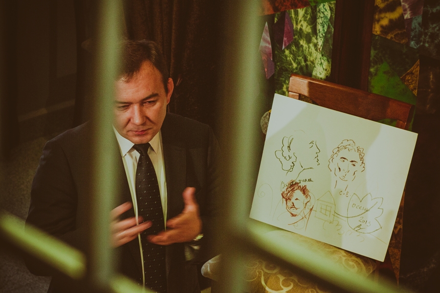 Фотоотчет Анатолия Бызова. Проект «Посвящение Вампилову» организован арт-галереей «DiaS» совместно с несколькими культурными площадками города. Особенность его заключается в том, что участниками стали как молодые художники, так и профессионалы. В Центре Вампилова открылась выставка работ, заявленных в первом туре проекта. «Произведения представлены в четырёх жанрах: живопись, графика, декоративно-прикладное искусство и театральный плакат. Все они по условиям проекта должны быть выполнены на профессиональном уровне и отражать творчество писателя. Больше всего молодые художники представили графических и живописных работ. А вот в номинации декоративно-прикладное искусство представлена только одна работа. Это броши, олицетворяющие героинь вампиловских пьес: Валентину из "Прошлым летом в Чулимске", Нину из "Старшего сына" и Галину из "Утиной охоты". "С самого детства меня впечатляли пьесы Вампилова, так по-детски, по-наивному. Я специально к этому конкурсу старалась их не перечитывать, не освежать в памяти, а сделать всё, как вспоминалось из детства, как завораживали эти девушки, иногда сильные, иногда трогательные, нежные. Броши - это наиболее выразительная форма. И это стереотипное значение, что у сердца, у груди, рядом с дыханием, с пульсом", - говорит Кристина Скобина, ювелир» (АС Байкал ТВ). Фотографии Кирилла Фалеева.