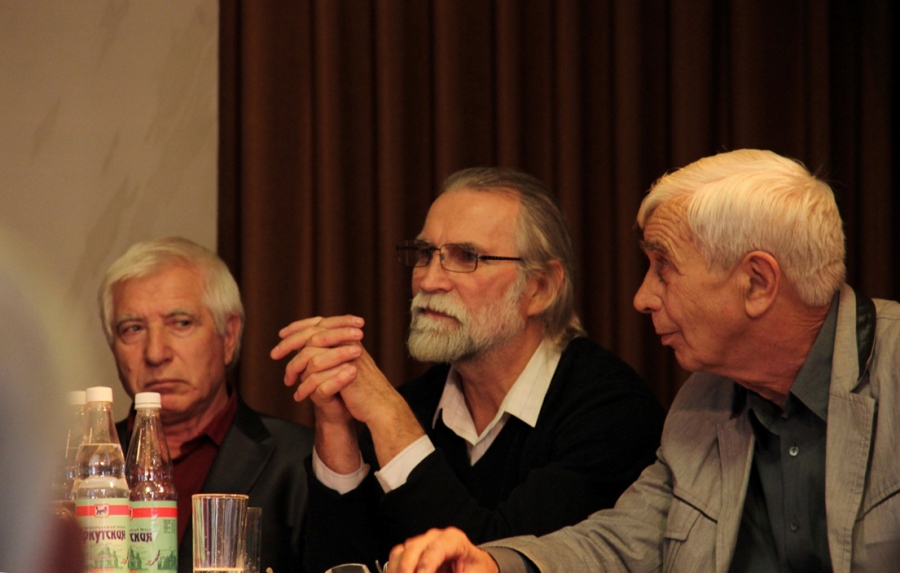На сцене Литературно-театрального салона Центра А.Вампилова 4 октября писатели подводили итоги Дней русской духовности и культуры «Сияние России», которые они называли праздником, говорили о Валентине Распутине и сибирских писателях, русской литературе в целом, а также о возможных путях её дальнейшего развития. Литераторы делились впечатлениями о пребывании в Иркутске, рассказывали о своей творческой судьбе, читали стихи, вспоминали коллег и радовали слушателей писательскими байками. Интересным было выступление якутского писателя Николая Лугинова, который говорил о разобщённости россиян и прогнозировал возможные результаты этой нездоровой тенденции. Стоит отметить, что даже несмотря на такие высокопарные темы, встреча не была пафосной, а вышла очень душевной, серьёзной и искренней. Надеемся, что после полуторачасовой встречи гости покидали Дом драматурга c добрым настроем ещё на долгое время.