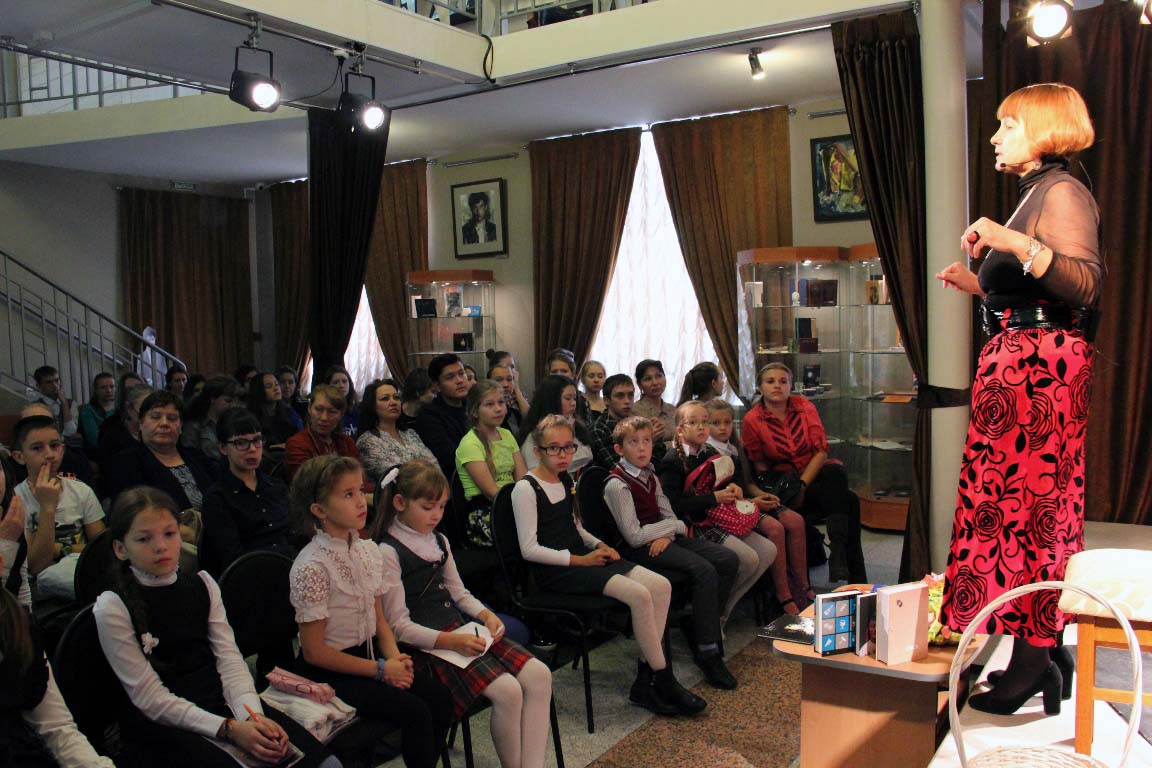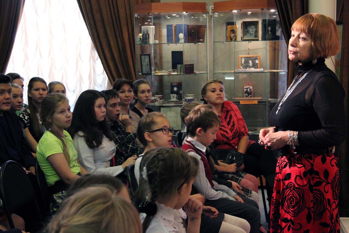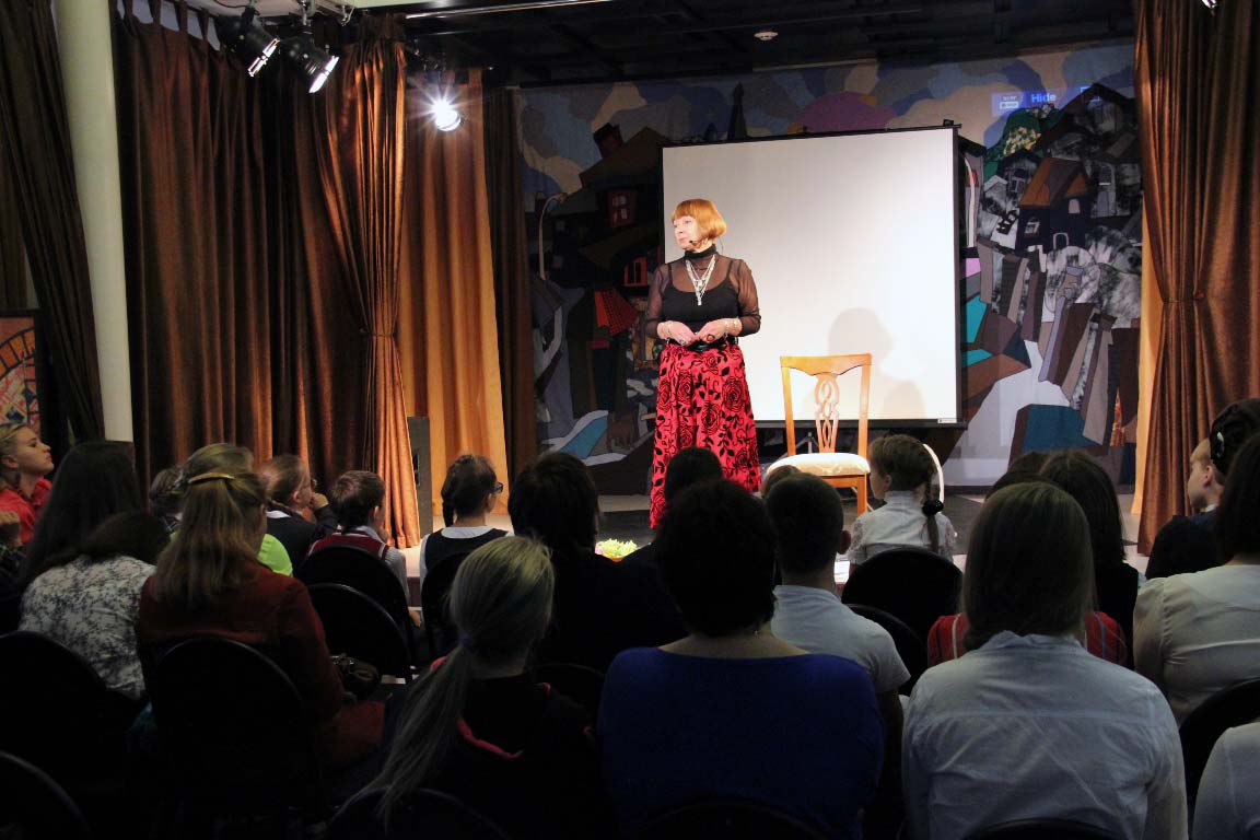 Фотоотчет Анатолия Бызова. Ребята, которые занимаются в театральных студиях, собрались в эти дни в рамках VII Детского образовательного форума «Школьный театр-2015». У них была насыщенная программа, в которую входило также знакомство с Театральным училищем, просмотр спектаклей и посещение мастер-классов. Попрактиковавшись и как следует окунувшись в театральную жизнь, они пришли в свой предпоследний форумный день к нам в Центр, чтобы послушать «Слово о Вампилове» и узнать о драматурге побольше. Их ждал развёрнутый и увлекательный рассказ не только об Александре Вампилове, но и о других драматургах, которые писали здесь, на прибайкальской земле. Литературный урок «Драматурги... из Прибайкалья» с демонстрацией коллекции из шести портретов, написанных Юрием Квасовым, прошёл в финале нашей сегодняшней встречи. Потом была викторина. Большое количество новой информации не сильно утомило ребят, и они отлично справились с вопросами. А молодой человек, сходу назвавший все пять вампиловских пьес, вызвал всеобщее одобрение. Гости ушли с подарками, фирменными конфетами и книгами, и надеемся, что и в сердцах они унесли что-то особенное. Спасибо за столь душевную обстановку, за яркие эмоции и за невероятное ощущение теплоты! Театральная студия «Маски» Эта атмосфера, дружелюбие дарит людям, приходящим сюда (и мне в том числе), непередаваемые эмоции, желание быть частью этого мира, желание творить, придумывать. Спасибо всем, кто здесь работает за то, что они помогли прочувствовать прекрасное. ...До глубины души... Какое счастье, что есть такой дом!!! Какое счастье, что есть вы!!! Какое счастье, что мы попали к вам!!!