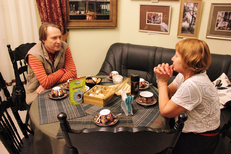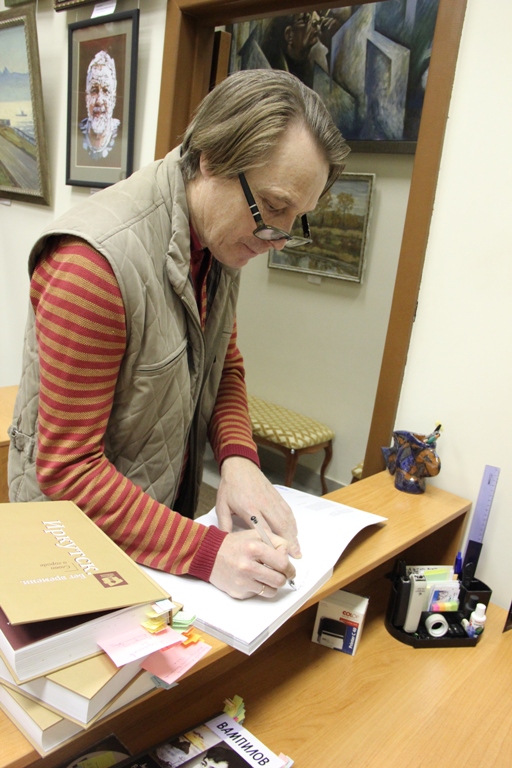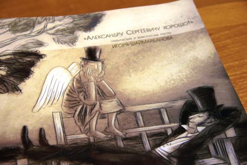 Фотоотчет Анатолия Бызова. «В Питере в это время ещё спят!», - с такими словами сегодня утром к нам зашёл художник Игорь Шаймарданов, который приехал в Иркутск по приглашению ТЮЗа им.А.Вампилова. Скоро премьера спектакля «В поисках волшебства», над оформлением которого работал Игорь Дмитриевич. А мы знаем его не только как сценографа, но и как сказочного иллюстратора «пушкинских историй». Циклы картинок, посвящённых поэту, покорили наши сердца сразу, как только мы их увидели. «Ситцевый Пушкин», «Михайловские царапки», «Александр Сергеевич и Арина Р.», «Александру Сергеевичу хорошо!» - одни названия уже воодушевляют. Игорь Дмитриевич видит поэта «без бронзы и монументализма, без пьедестала и недосягаемости». Художник говорит, что «при этом он всегда Поэт…». Игорь Дмитриевич оставил на память два автографа: на «Стене признательности» и в своём альбоме. Знакомство оказалось в высшей степени приятным. Гость впечатлился Домом, мы под впечатлением от душевного гостя - неделя началась со знаком «плюс»! Предлагаем и вам зарядится теплом работ пушкинских серий на сайте Игоря Шаймарданова.