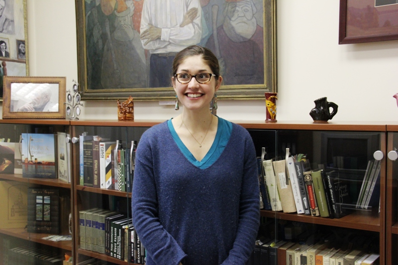 Фотоотчет Анатолия Бызова. В конце прошлой недели в Центре А.Вампилова появился очень солнечный и улыбчивый человек – американка Сара Чатта, приехавшая в Иркутск по программе Миддлбери Колледжа. Она учится в Оберлинском колледже в Огайо, США, где осваивает русский язык и литературу. В Иркутск девушка приехала в начале февраля. Не так давно вместе с другими американскими студентами она пришла на экскурсию в Центр А.Вампилова, а затем решила поработать с нами в качестве волонтёра. Сара рассказала о себе, о своей учёбе и о том, почему Москве и Ярославлю она предпочла Иркутск. Русским языком я стала интересоваться, когда прочла «Братьев Карамазовых» Достоевского в переводе. Тогда я жила в Индии, мне было 18 лет. Там, кстати, очень много русских авторов, переведенных на английский, я удивилась, насколько много! После этого «Братья Карамазовы» стали моей любимой книгой, и я мечтаю прочитать её на русском. Ещё я читала рассказы Бунина, стихотворения Мандельштама, Цветаевой, Ахматовой и чуть-чуть Блока. С изучением русского на первом курсе всё было превосходно! Я влюбилась в него. На втором – посложнее. На третьем моя любовь вспыхнула вновь. В русском я вижу логику, которой нет в английском. Для каждого определения у нас новое слово, а в русском из одного корня ты можешь сделать много слов. Самое сложное в вашем языке, конечно, грамматика. В Иркутском государственном университете на факультете журналистики я посещаю занятия по истории России, лекции «Сибирь в международных отношениях», курс русской литературы «Гоголь и фантастика», Серебряный век. Из Вампилова я прочитала рассказ «Студент» и пьесу «Старший сын» на русском языке. Вампилова читать не так сложно, как других русских писателей, но я чувствую, что за внешней простотой кроется глубокий смысл, подтекст. Пока что я не знаю, как он думает вообще, не улавливаю его стиль, но очень хочу узнать. Поэтому намерена прочитать все остальные пьесы.