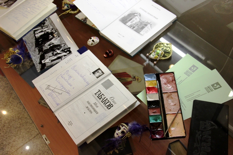Фотоотчет Анатолия Бызова. «Театр есть искусство отражать» - такое название носит новая выставка в Центре А.Вампилова, подготовленная к Международному дню театра 27 марта. В заглавии книжной экспозиции – фраза Константина Станиславского. Театр – отражение жизни со всей её полифонией звуков, яркостью красок, неповторимостью фактуры и разнообразием взаимоотношений. Театр хочется изучать, про него интересно читать. Немалую часть библиотеки Центра занимают книги о театре, воспоминания актёров и труды режиссёров, театральная критика и драматургия. Некоторые из представленных книг – уникальны. Прежде всего, это те издания, на которых оставили автографы их именитые авторы: «Моя настоящая жизнь» Олега Табакова, где читатель знакомится с автобиографической прозой, мудрые «Статьи разных лет» Ии Саввиной, увлекательные мемуары Николая Чиндяйкина, книга «Птицы небесные» Виталия Венгера, которая продолжает многолетние раздумья автора «о сущности прекрасного и мучительного труда актёра». Ещё одна часть экспозиции – размышления о театре. Это «Моя жизнь в искусстве» Константина Станиславского, «попытка осмысления режиссёрского опыта» Георгия Товстоногова в «Беседах с коллегами», труд Константина Рудницкого о Мейерхольде, биография Бертольда Брехта, написанная Львом Копелевым в серии ЖЗЛ, театральные очерки Б.Алперса, история западноевропейского театра, четырёхтомник П.Маркова «О театре», «Очерк из истории театральной культуры Сибири» Павла Маляревского и другие. Об иркутском театральном мире рассказывают две книги Светланы Жартун о драматическом театре и Вампиловском фестивале. За стекло выставочных витрин не попали многие другие великолепные издания о театре, которые можно найти на книжных полках Центра. Дополняет книжную экспозицию коллекция театральных масок, собранная в Доме драматурга. В ней – маски из Санкт-Петербурга, в том числе из Александринского театра, Москвы, Венеции, Сеула, привезённые и подаренные иркутянами. «Театр есть искусство отражать»