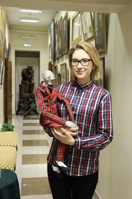 Фотоотчет Анатолия Бызова. Гостья – Анастасия Ермакова, студентка Политеха, которая готовится к дипломной работе. Она учится на 4 курсе факультета ИЗО и очень любит то, чем занимается. Она пришла с идеей воплотить в своём дипломном проекте героев Вампилова в куклах, а принесла с собой Коровьева-Фагота – куклу в клетчатом пиджаке, свою первую работу. Он покорил нас, и мы внимательно выслушали Анастасию, провели для неё экскурсию и поделились мыслями по поводу задуманного ею проекта. За четыре курса Настя успела попробовать всё: академический рисунок, гипсомодельное дело, компьютерную графику, изготовляла сувенирную продукцию и арт-объекты, участвовала в выставках. Но сердце её завоевала керамика и куклы. Сейчас у Анастасии осталось два с половиной месяца, чтобы разработать эскизы и сотворить новых прекрасных созданий, которые станут частью музейной экспозиции Центра А.Вампилова. Мы представим их в рамках июньской недели «Свиданий у Вампилова». Желаем Насте творческих успехов и вдохновения!