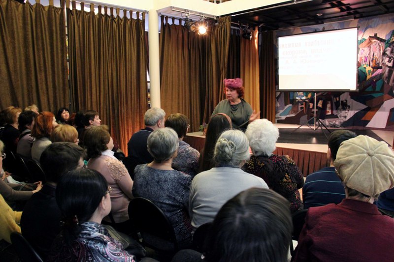Фотоотчет Анатолия Бызова. Вчера в Центре А.Вампилова впервые так объёмно и долго звучало имя хозяина усадьбы, во флигеле которой сейчас расположен Дом драматурга, Александра Андреевича Юзефовича. Он построил её в начале ХХ века и жил со своей большой семьёй, имея доходный и жилой дом, а также поражающий размерами молельный дом. В Иркутске никто из купцов не имел подобного пространства для семейной молитвы, а у Юзефовичей каждое утро начиналось с благодарностей Богу за удачи в делах. А купец действительно был успешен: он приехал в Иркутск юношей из Петропавловска и дослужился здесь до члена городской управы, сколотил капитал и даже исполнял обязанности городского головы. Об этом и не только рассказала вчера Валентина Рекунова, автор многотомника «Иркутские истории», которые создаются по старым газетным архивам – подлинным свидетелям времени. Свою встречу со слушателями в Центре А.Вампилова она назвала «Юзефович телеграфирует. Штрихи к портрету, который будет когда-то кем-то написан». Действительно, сегодня мы знаем о Юзефовиче совсем мало, его портрет только вырисовывается перед нами. И этой темой, конечно, нужно заниматься. Да, репортажи с заседаний суда и сатирические заметки об А.А.Юзефовиче создают нелестную картину, но, с другой стороны, посмотрите, какое великолепное здание оставил купец нашему времени. И в этих стенах Дом Вампилова чувствует его покровительство и поддержку. Надеемся, что на основе своей лекции Валентина Рекунова подготовит интереснейший материал для печати, который мы продублируем на нашем сайте.