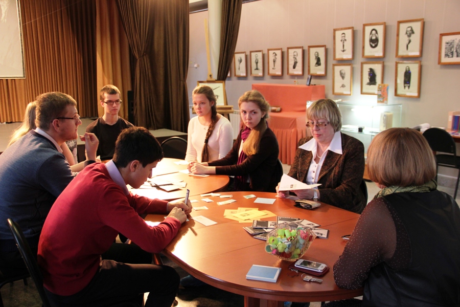 Фотоотчет Анатолия Бызова. Вчера в Центре Вампилова состоялся диалог с десятиклассниками школы №14. Поздоровавшись, заняв места вокруг стола и получив в подарок сувениры, они услышали такой вопрос: «Что вы, ребята, ожидаете от нашей сегодняшней встречи?». Мы предупредили, что фамилии писать не надо, оценки выставляться не будут. Каждый написал свой вариант, но похоже, что списывание имело место быть – очень уж похожи ответы. Но мы не серчаем на эти школьные привычки. «Жду что-то интересное, узнать более углублённо про Александра Вампилова». «Узнать больше о жизни Вампилова, ознакомиться с его творчеством». «Узнать более подробно из биографии А.Вампилова, о его произведениях». «Посещая любую экспозицию, я жду чего-то нового: интересную информацию, ценные экспонаты, от этой экспозиции я жду того же». «Узнать что-то новое, интересное о Вампилове. Любимые его занятия». «Спокойная атмосфера, в которой мы насладимся и почувствуем всю жизнь А.Вампилова». После полуторачасовой беседы и экскурсии ребятам было предложено написать небольшой отзыв. Мы собрали их записки и прочли: «Большое спасибо! Я узнала много нового о драматурге, о его жизни, увлечениях, какие интересные небольшие рассказы писал Вампилов». «Огромное спасибо!!! Я был очень рад слушать сегодняшний рассказ. Ещё раз огромное спасибо!». «Спасибо! Очень интересно и приятно было посетить этот музей!» «Мне очень понравилось, узнала много нового, очень интересный был рассказ, фильм. Хорошая атмосфера. Интересно было увидеть фотографии, его блокноты». «Большое спасибо. Я был несказанно рад снова здесь побывать и насладиться атмосферой». Оказывается, что школьники экскурсией в Центре провели свой классный час, посвящённый Александру Вампилову, который входит в их учебную программу. Приглашаем последовать их примеру. Приходите к нам на тематические уроки!