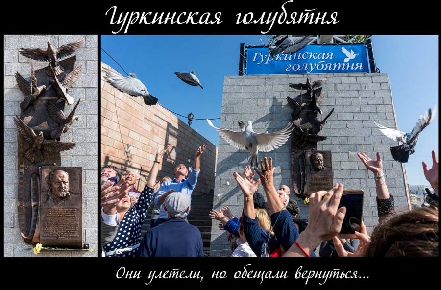 Фотоотчет Анатолия Бызова. Вчера, в день 65-летия драматурга Владимира Гуркина, в самом центре Иркутска было открыто мемориальное панно. На праздничном событии в 130-м квартале собрались представители городской администрации, работники культуры, театра, почитатели таланта Владимира Гуркина. На панно в виде киноплёнки изображён портрет драматурга, пять взлетающих голубей, а также текст: «Эта голубятня – знак памяти о жизнерадостном, глубоком и очищающем таланте нашего земляка, драматурга Владимира Павловича Гуркина. В своих пьесах автор добирается до глубин национального характера, в них оживают чудак и предатель, запутавшийся простак и самокопающийся горемыка и, конечно, устремлённый к нему Володя из знаменитой пьесы, коорого за чистоту и непорочность голуби признали своим». В конце торжественного открытия гости отпустили в небо голубей. Фотографии Анатолия Бызова