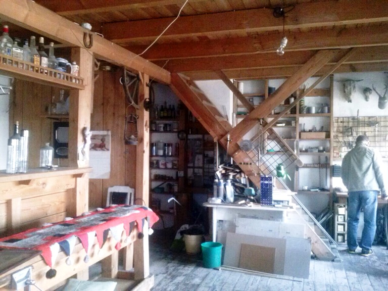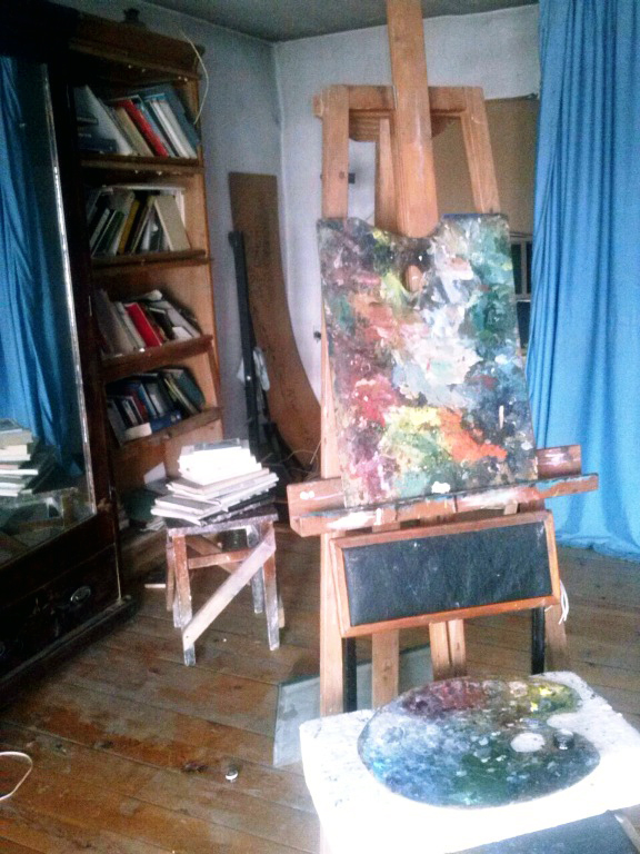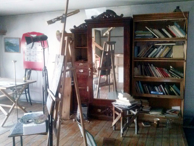 Фотоотчет Анатолия Бызова. Полтора месяца назад мы прощались с художником, дизайнером, Другом Дома драматурга Владимиром Дейкуном. Следы его творческого присутствия в Центре А.Вампилова повсюду: это картины и арт-объекты, это дизайнерское решение музейной экспозиции, это эмблема и вывеска, и даже самые небольшие детали, как, например, забавная табличка-предупреждение о функционировании видеонаблюдения: «Мы следим за вашими успехами». Без этого талантливого человека всем нам очень грустно… Сегодня сотрудники Центра побывали в мастерской художника. Вдова Ольга Фёдоровна передала Центру А.Вампилова несколько вещей Владимира Васильевича, в том числе коллекцию стеклянной посуды и рабочий стол. Старинный стол сегодня отправился на реставрацию, после чего он разместится в музейной экспозиции «На антресолях», и будет посвящён памяти Владимира Дейкуна.