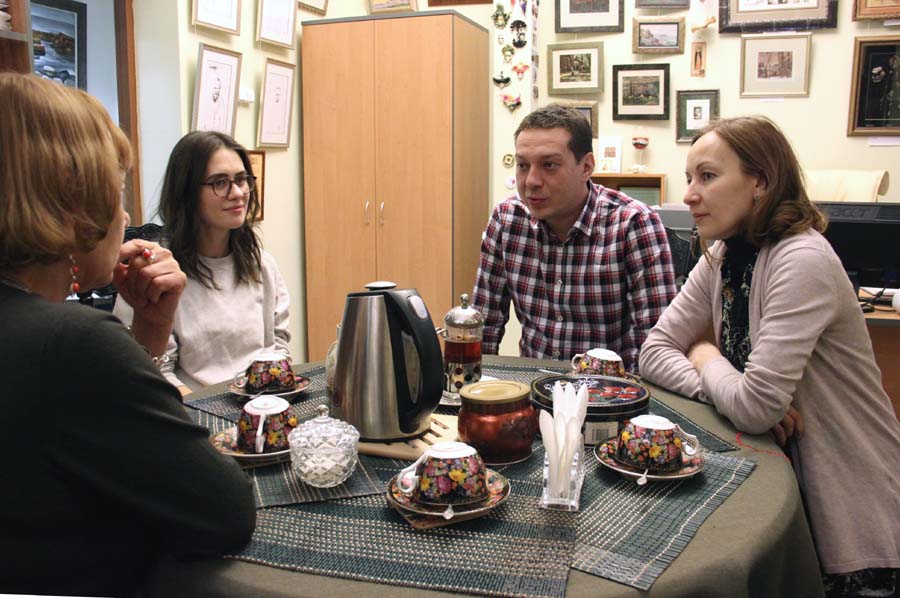 Фотоотчет Анатолия Бызова. В конце февраля в Черемховском драматическом театре им.В.П.Гуркина состоится премьера спектакля по пьесе Вампилова «Утиная охота». Постановкой займётся режиссёр Даниил Безносов, приглашённый из Краснодарского молодёжного театра. Сегодня гости из Краснодара прибыли в Иркутск и вместе с директором черемховского театра Татьяной Довгополой посетили Центр А.Вампилова. За чашкой чая они поговорили с директором Центра А.Вампилова Галиной Солуяновой о вампиловском творчестве, посмотрели лист с автобиографией драматурга, написанной его рукой, полистали шестой номер альманаха «Ангара» за 1970 год, где была впервые опубликована пьеса. Сейчас режиссёр и художник краснодарского театра отправляются в Черемхово, чтобы познакомиться с городом и труппой и приступить к работе над постановкой. В их планах – посещение Культурного центра Александра Вампилова вместе со всей постановочной группой с тем, чтобы пройтись по музейной экспозиции «На антресолях», послушать «Слово о Вампилове», напитаться энергетикой Дома драматурга.