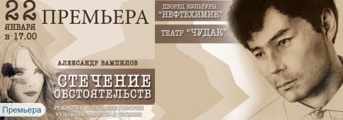 В воскресенье ангарский любительский театр «Чудак» приглашает на премьеру спектакля «Стечение обстоятельств» по А.Вампилову. Над спектаклем работал режиссер Александр Говорин и художник Вячеслав Прошин. В пять часов вечера 22 января во Дворце культуры «Нефтехимик»  состоится премьера. Мы желаем театру отличной премьеры, а зрителям спектакля – радостного просмотра!