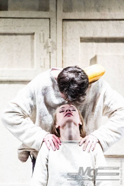 Старший сын в Хабаровске. Фото Натальи Ивацик Пожалуй,  сцена Виталия Федорова (Бусыгин) и Анастасии Дымновой (Нина)  – одна из самых мощных в спектакле по силе любви, той самой, что почти невозможно сыграть. Этим надо жить. Это, когда каждая клеточка исполнена страстью, не похотью, а именно страстью, и от этого спектакль становился невероятно живым, и от этого захватывает дух.