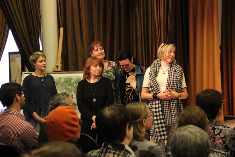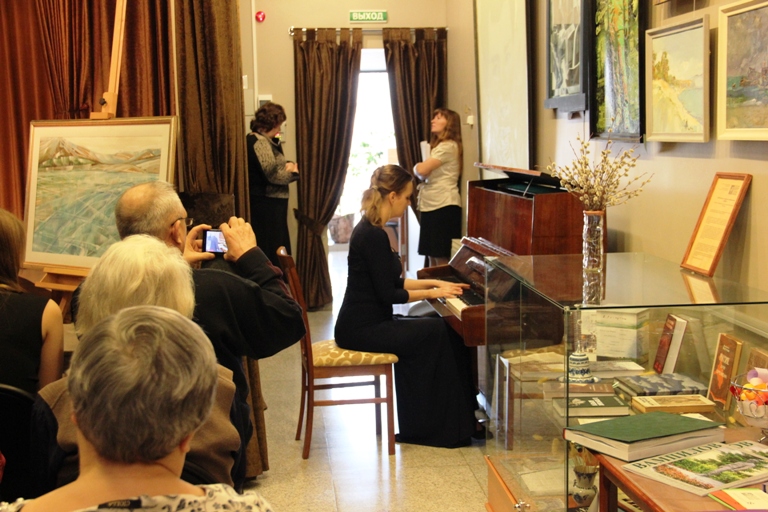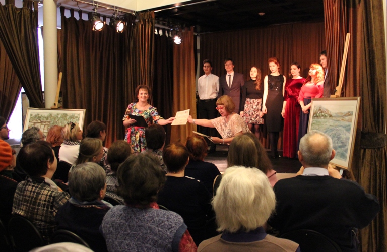 Фотоотчет Анатолия Бызова. Вчера в Литературно-театральном салоне Центра А.Вампилова звучала музыка и сияла выставка «Свет его звезды...», посвящённая Александру Вампилову. В экспозиции собраны двадцать работ, созданных иркутскими художниками – прекрасными женщинами из творческого объединения «М’АРТ», членами Союза художников, признанными мастерами кисти и карандаша. Выставка представляет собой коллекцию живописи и графики на тему Иркутска и Байкала – знаковых для Александра Вампилова мест. Разноликие образы природы и города, так органично скомпонованные в единой выставке, создают замечательное впечатление и располагают к неспешным размышлениям о жизни и творчестве драматурга. «Свет звезды» Александра Вампилова, несомненно, сияет над этими работами. Авторы картин – М.Марцинечко, А.Мартынова, Е.Салтыкова, Н.Сысоева, Н.Балакина, М.Синишина, Н.Довнич. Подарком художникам и всем гостям Дома драматурга в этот день стал музыкальный концерт, подготовленный нашими давними друзьями – кафедрой музыкального образования Педагогического институту ИГУ. Академическое исполнение вокальных и инструментальных номеров, подготовленное студентами под руководством преподавателей, украсило вернисаж. Семь работ выставки «Свет его звезды...» останутся в Картинной галерее Дома драматурга: это подарки иркутских художниц Дому драматурга в юбилейный Вампиловский год. А всю выставку можно посмотреть в Центре А.Вампилова в течение месяца.