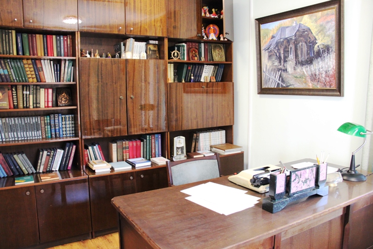 Фотоотчет Анатолия Бызова. В день 80-летия Валентина Распутина, 15 марта, в Иркутске открылся именной музей писателя. Он расположился на улице Свердлова в отреставрированном памятнике истории и культуры, красивейшем деревянном особняке. Заведующая музеем, который является отделом Краеведческого музея, Елена Манушкина провела для сотрудников Центра А.Вампилова экскурсию по дому. Сейчас в музее Распутина центральной является временная выставка «Откуда есть–пошли мои книги», которая рассказывает о корнях писателя, его детстве на Ангаре, о малой родине – Аталанке и Усть-Уде, о прототипах героев распутинских произведений. В отдельной комнате оформлен рабочий кабинет писателя: книжный шкаф, рабочий стол, книги, иконы, пишущая машинка, коллекция колокольчиков и даже шторы на окнах – всё это находилось в иркутской квартире Валентина Распутина, принадлежало писателю, и передано музею его сыном Сергеем Валентиновичем. На столе – несколько листов с рукописями Валентина Распутина, и этот почерк не спутаешь ни с каким другим. В цокольном этаже музея находится выставка фотографий ангарских старожилов (автор снимков – Галина Афанасьева-Медведева), а также иллюстрации к произведениям Распутина и проектор с экраном, на котором проигрывается документальный фильм «Во глубине Сибири. Валентин Распутин». Музейный магазин радует хорошим выбором необычных сувениров. Рождение музея Распутина в Иркутске – большое событие. Замечательно, что теперь у обоих классиков литературы, прочно связанных с Иркутском, - Александра Вампилова и Валентина Распутина, в этом городе есть Дом. Выставка «Откуда есть–пошли мои книги» будет работать в музее ещё два месяца, горячо рекомендуем успеть побывать на экскурсии!