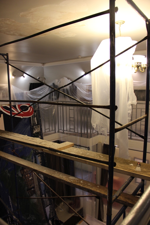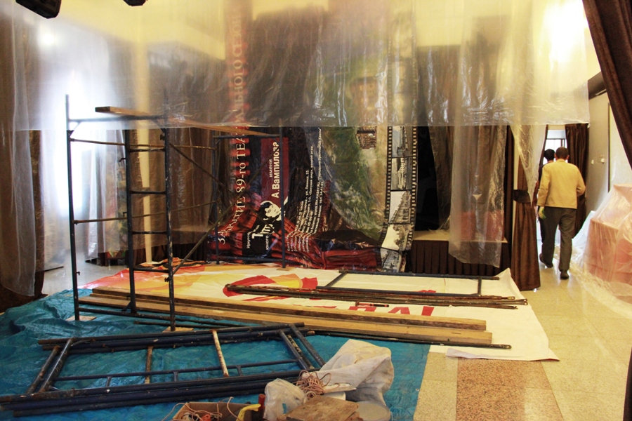 Фотоотчет Анатолия Бызова. Старинное здание начала ХХ века, в котором расположен Центр А.Вампилова, требует постоянного внимания. Разные уголки Дома регулярно нуждаются в обновлении, ремонте и контроле со стороны хозяев. Так, например, этой весной Центр А.Вампилова столкнулся с проблемой протекания крыши, что негативно отразилось на внешнем виде потолка Литературно-театрального салона. После устранения причины протекания на крыше, рабочие взялись и за реставрацию потолка. Провести ремонт позволило дополнительное финансирование учредителей Центра А.Вампилова – Министерства культуры и архивов Иркутской области. Городские власти также оказали поддержку Дому драматурга: сейчас по периметру здания устанавливается ограждение, которое позволит защитить прилегающую территорию и бордюр от автотранспорта. Работы в помещении и на улице ещё продолжаются, но скоро будут закончены, и гости смогут увидеть обновление уже в этом месяце.