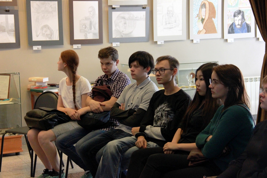 Фотоотчет Анатолия Бызова. Узнать о Вампилове шире школьной программы и в форме увлекательной встречи с интересными людьми и исторически ценными предметами сегодня смогли одиннадцатиклассники гимназии №44. Они побывали в Центре А.Вампилова, осмотрели музейную экспозицию с вещами, к которым прикасалась рука драматурга, увидели картинную галерею, выстроенную по вампиловской тематике: Байкал, Кутулик, Иркутск, друзья и современники, конечно, портреты самого Александра Валентиновича. Согласитесь, такое внеклассное занятие по литературе запомнится надолго, а копилка культурных уголков родного города пополнится ещё одним местом. Центр А.Вампилова всегда рад встретить школьников, студентов, туристов и горожан, чтобы вместе погрузиться в эпоху 60-х годов прошлого века, в атмосферу творчества Александра Вампилова, задуматься о природе этой выдающейся личности. Ждём на экскурсиях по будням с 10 до 16 часов. Телефон для записи – 20-39-74.