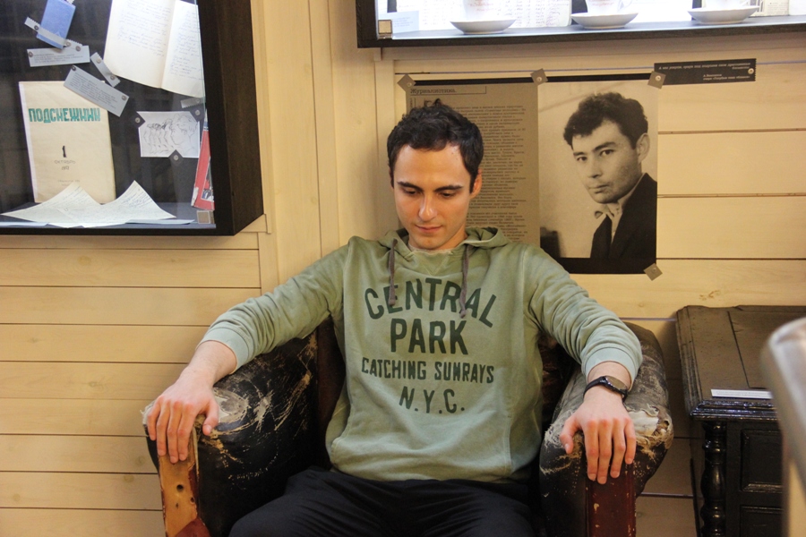 Можно ли приехать в Иркутск на Большие гастроли, выступать на сцене Иркутского областного театра юного зрителя имени Александра Вампилова и не зайти в Дом драматурга? Актёры Театра юного зрителя имени А.А.Брянцева из Санкт-Петербурга однозначно отвечают, что такое просто невозможно. В пятницу труппа посетила наш Дом драматурга. Актёры, по-настоящему интересующиеся жизнью Александра Валентиновича, внимательно осмотрели экспозицию «На антресолях», узнали историю Центра и поговорили о пьесах, театре и творчестве за кружечкой чая.