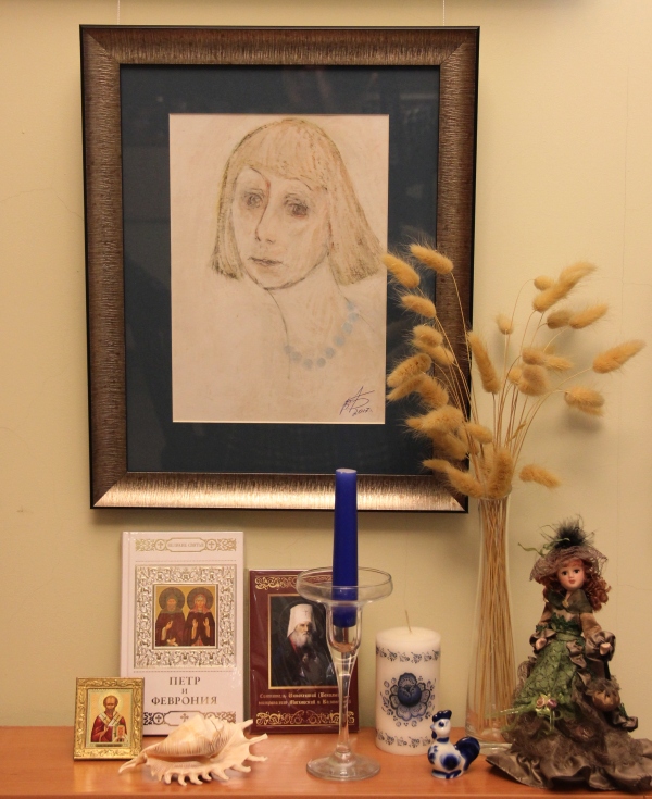 Фотоотчет Анатолия Бызова. «Но сущий вздор, что я живу грустя Эти прекрасные строки проступают сквозь паутинку, сотканную из лиричного взгляда, тонких черт и пастельной нежности, отображённой на картине с названием «На стихи Анны Ахматовой…», женщины. Поэтическое изображение - дар автора Виктора Бердакова - был привезён нашим директором из поездки в Северную столицу. Картины, нарисованные кончиками пальцев театральным гримом, хранящие тепло рук и неуловимую магию театра – отличительный знак работ этого художника и актёра из Санкт-Петербурга. В Центре со стен уже взирают четыре его уникальные работы: «Александр Вампилов», «Володя Гуркин», «Такие глаза…» и «Неизвестный декабрист», а сегодня в этой портретной семье произошло пополнение. Появился в Картинной галерее и ещё один дар, исполненный в совершенно другой технике. Но источник вдохновения у них схожий: слово, красивая история, сердечный разговор. И Галина Константиновна Романова, радиослушательница авторской передачи Галины Солуяновой "Поговорим о странностях любви...", создала работу из бересты и передала её как подарок Центру. Она поселилась рядом с картиной Натальи Балакиной «Памятник Вампилову», укрепляя цепочку увековечивания посмертной славы: образ драматурга воссоздан в памятнике, но и сам памятник становится героем изображений. Отныне эти два дарения, непохожие, но объединённые теплом рук, их создававших, будут жить в нашей Картинной галерее, наполняя пространство своей энергетикой и творя светлую атмосферу вокруг себя.