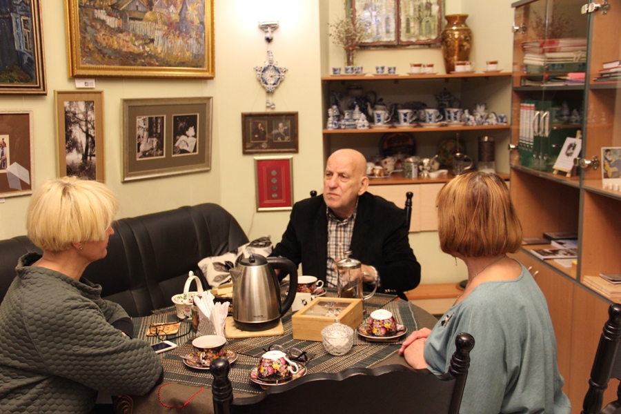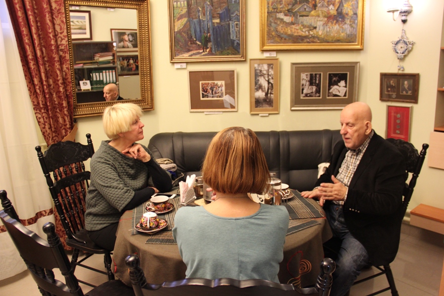 Есть люди, которые приносят с собой радость, которые рассказывают так увлекательно, что после разговора с ними не покидает ощущение, будто только что прочитал книгу -  удивительную, ироничную, полную событий. Вчера Центр посетил именно такой человек – Валерий Владимирович Шульжик. Он только утром прилетел в Иркутск, для сотрудничества с Иркутской типографией «Графика+», а днём уже посетил Дом драматурга вместе с Галиной Константиниди, генеральным директором типографии, чтобы познакомиться. Автор знаменитого поросёнка Фунтика, написавший более двадцати книг, тридцати пьес и сотни любимых детских стихов, поделился своими  историями за кружечкой чая, ознакомился с Картинной галереей и оставил свой автограф на «Стене признательности»  Центра.