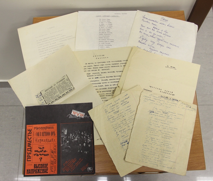Галина Павловна Ротенфельд передала фондохранилищу документы: стихи Александра Вампилова, написанные его рукой, несколько страничек машинописного текста с рассказами и задумками, письма к Александру Валентиновичу, стихи, посвящённые его памяти, газетные вырезки, заметки с упоминанием его имени, афишу иркутского спектакля «Предместье» и записи современников и знакомых драматурга.